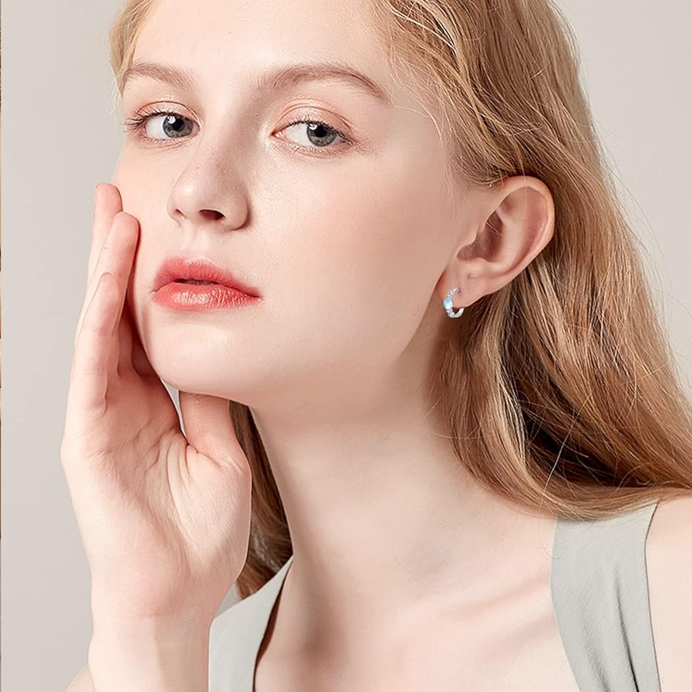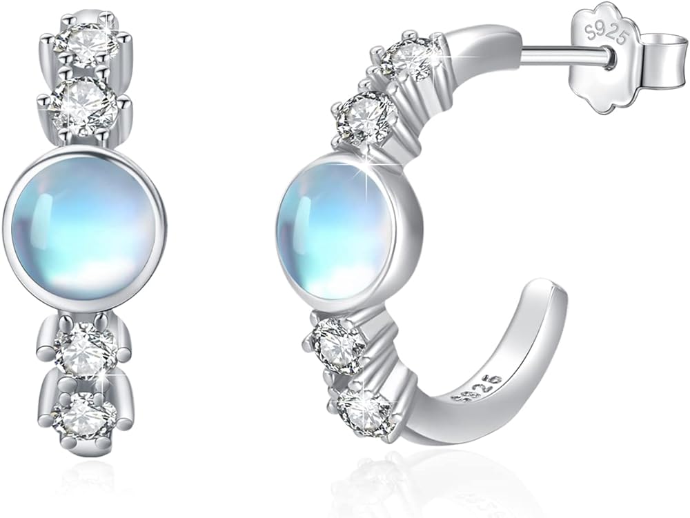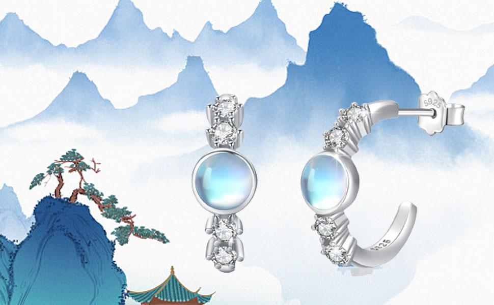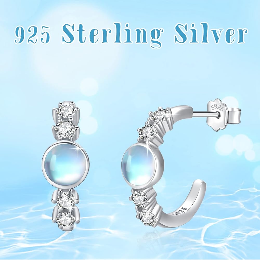 【مادة الفضة الإسترلينية】: الأقراط الحلقية من حجر القمر مصنوعة من الفضة الإسترلينية S925 الأصلية. لا يسبب الحساسية ومناسب للبشرة الحساسة، خالي من النيكل والرصاص والكادميوم ومقاوم للأحماض والقلويات، لا يبهت ولا يتشوه.