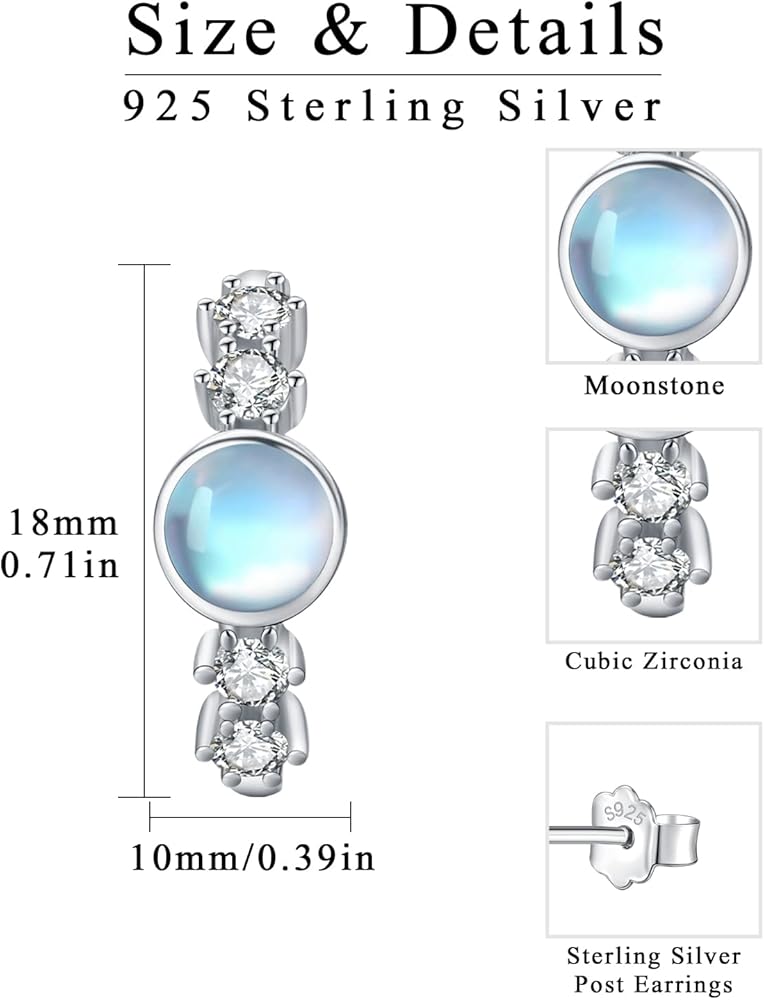 【حجم أقراط حجر القمر】: 0.71*0.39 بوصة (قطر 0.71 بوصة) وزن الفضة الإسترلينية S925 2.5 جرام ليس من السهل أن يسبب ضررًا للأذنين