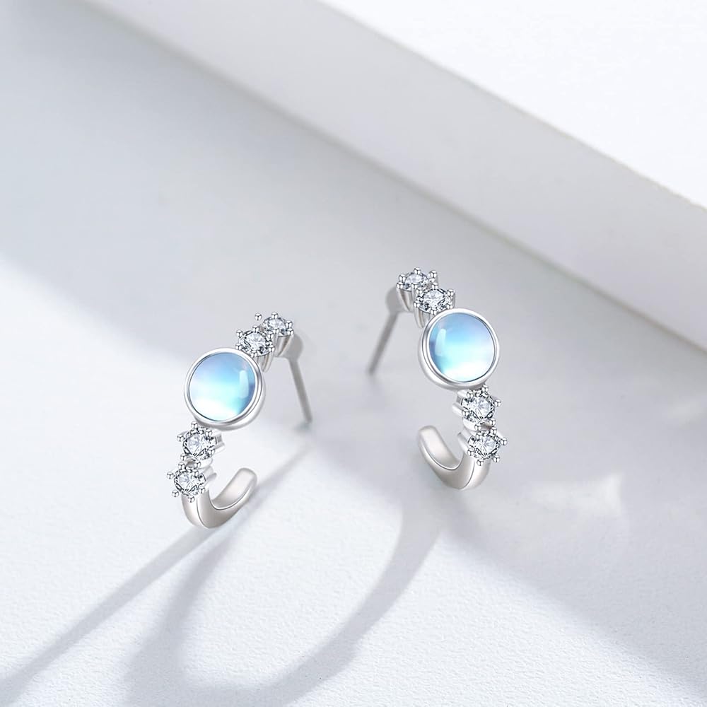 【أقراط حجر القمر】: أحجار القمر الاصطناعية تضفي تألقًا غامضًا، القليل من الأحجار الكريمة يمكن أن تتطابق مع رومانسية وغموض أحجار القمر. نصف حلق أقراط من حجر القمر للارتداء اليومي