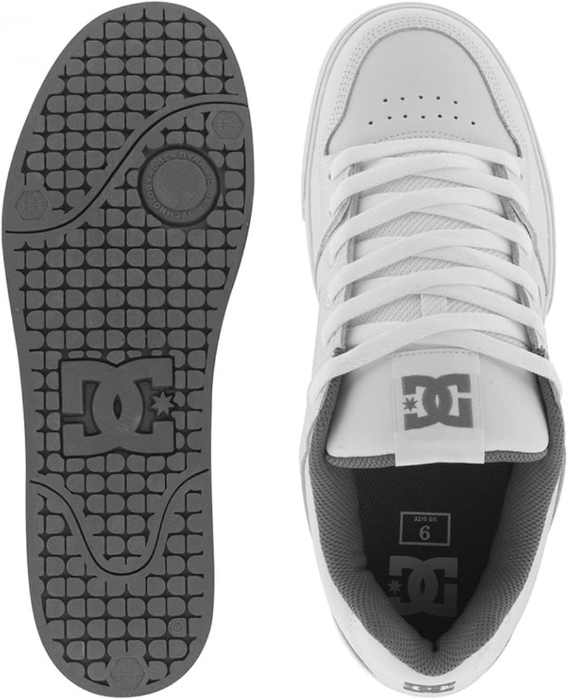 تصميم حذاء تزلج كلاسيكي من دي سي مع لسان مبطن ونعل خارجي بتقنية قبضة متينة وألواح تهوية للتهوية.