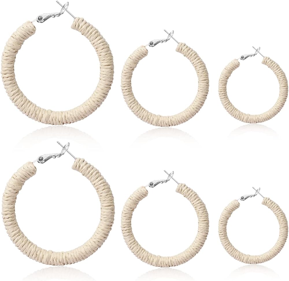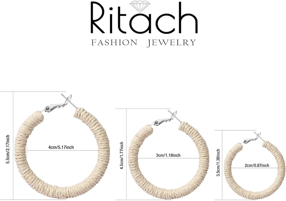 • تصميم فريد من نوعه: مجموعة أقراط دائرية لطيفة من الروطان، أقراط دائرية مصنوعة يدويًا من القش، تصميم دقيق يجعلك مختلفًا عن الآخرين.