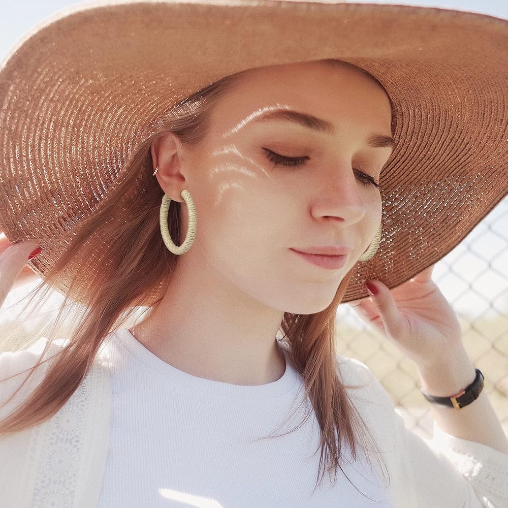• تصميم لا يسبب الحساسية: أقراط دائرية من القش للنساء، لا تسبب الحساسية للأذنين الحساسة. أقراط دائرية كلاسيكية بسيطة لأي ملابس.