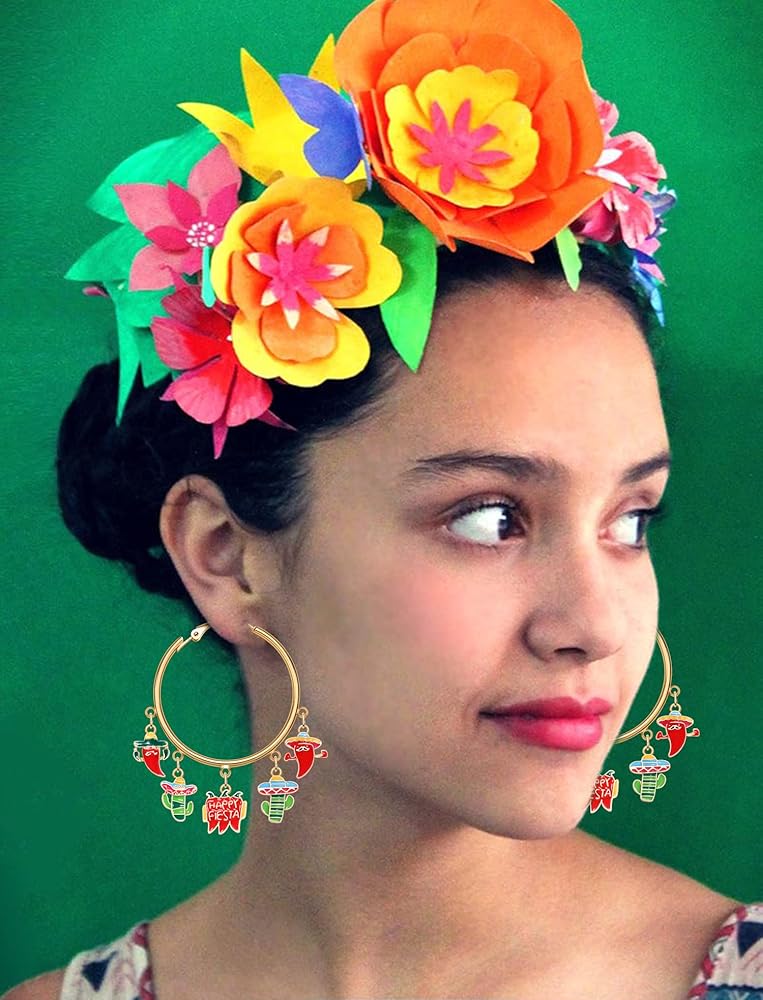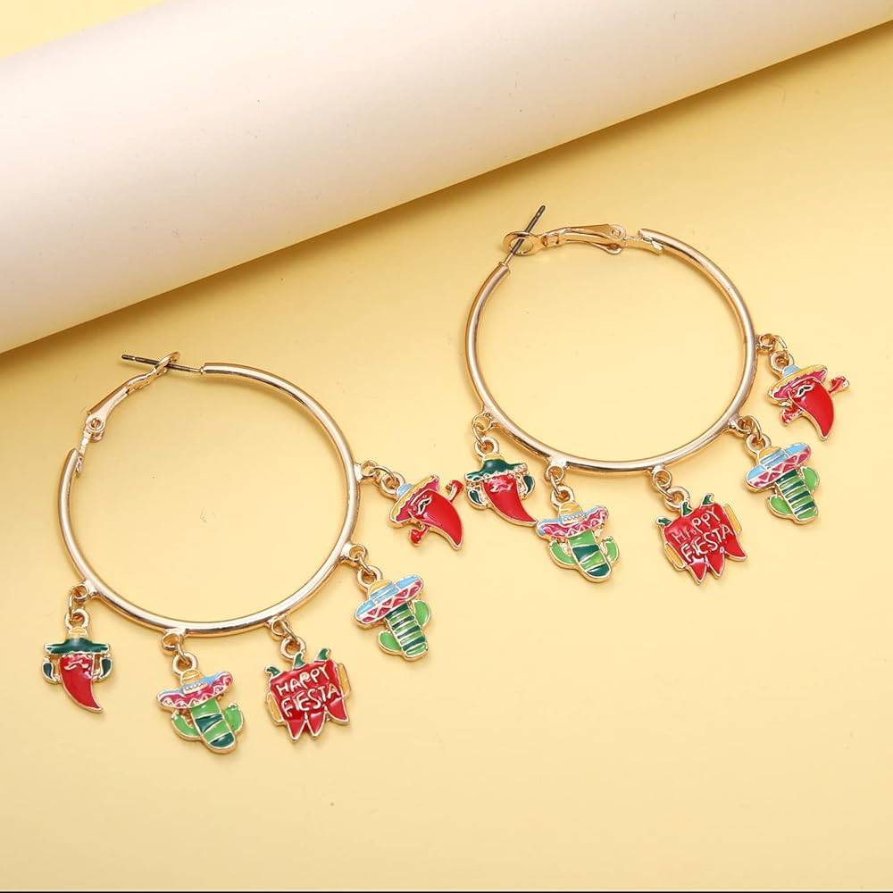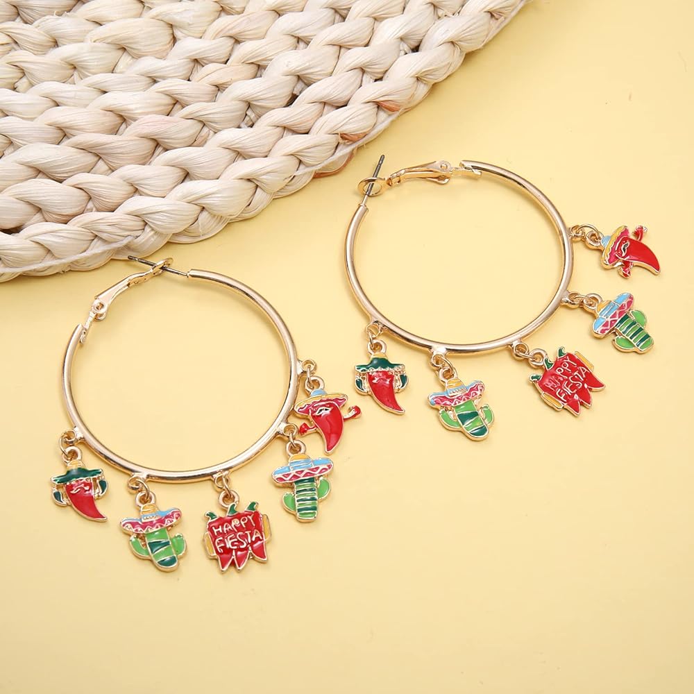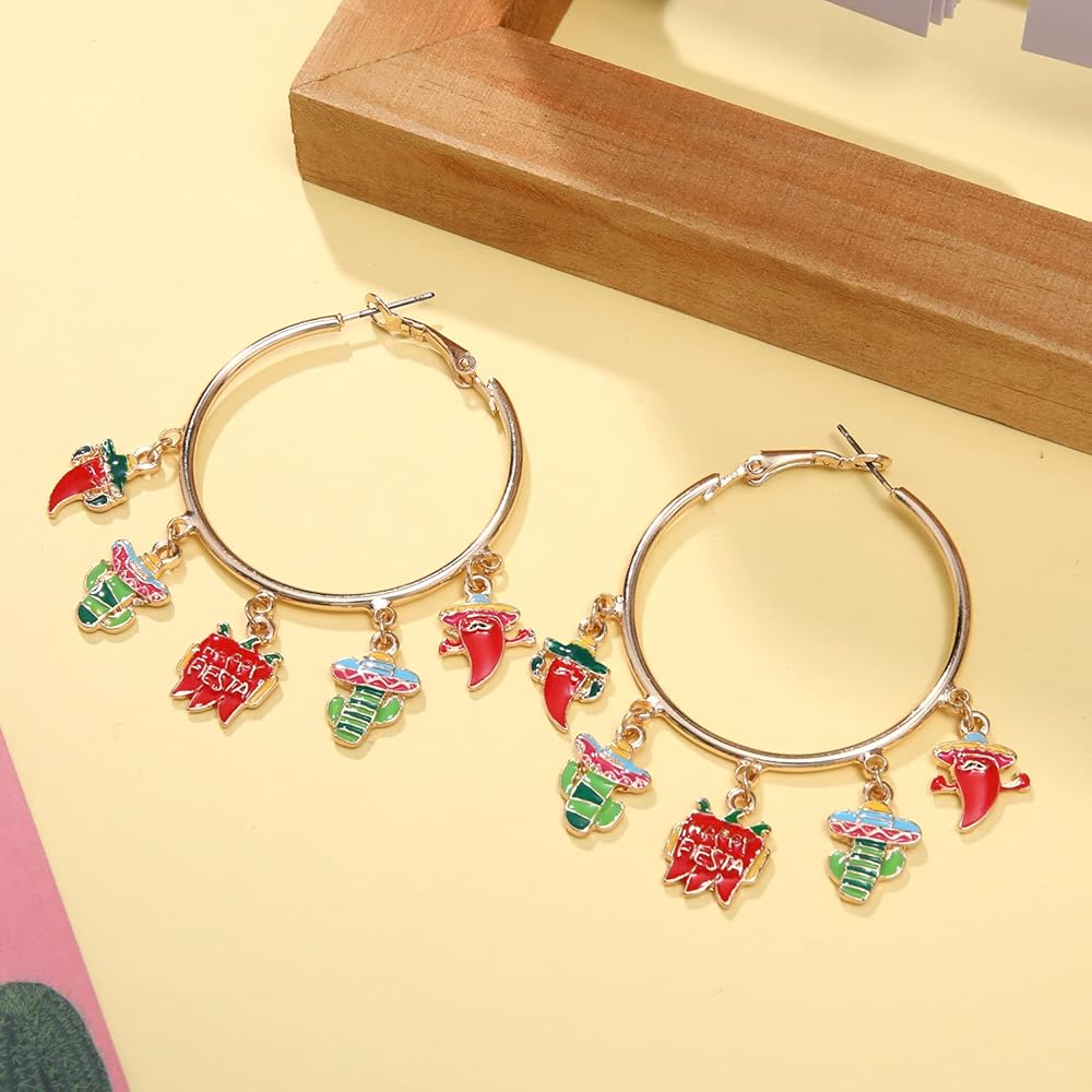 سينكو دي مايو أقراط هوب للنساء الفتيات، المكسيكي العيد الفلفل الأحمر الفلفل الحار هوب الأقراط، هيبوالرجينيك دائرة كبيرة الأخضر الصبار سمبريرو سحر هوب الأقراط، بيان ملون المينا سينكو دي مايو يوم أقراط مجوهرات المكسيكي عطلة حزب هدية