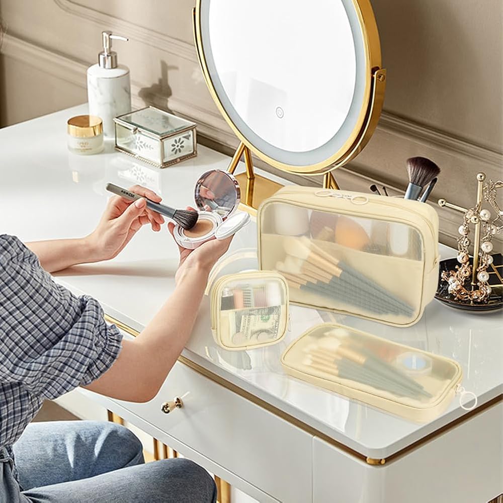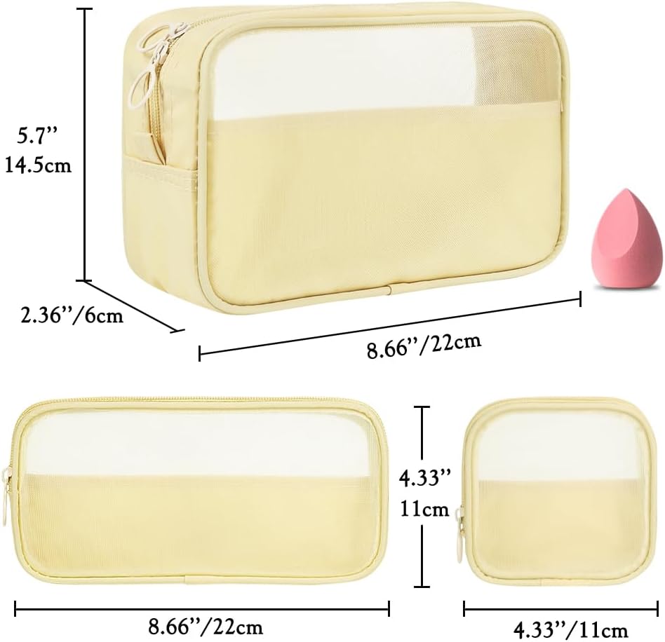 💅 رؤية واضحة وقابلة للتنفس - مجموعة حقائب مستحضرات التجميل شبكية، لذلك يمكنك رؤية جميع أغراضك بالداخل قبل الفتح. وهو مثالي لأي شيء مبلل حتى يجف، مثل فرش المكياج وأدوات النظافة