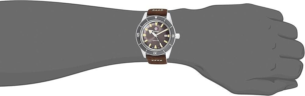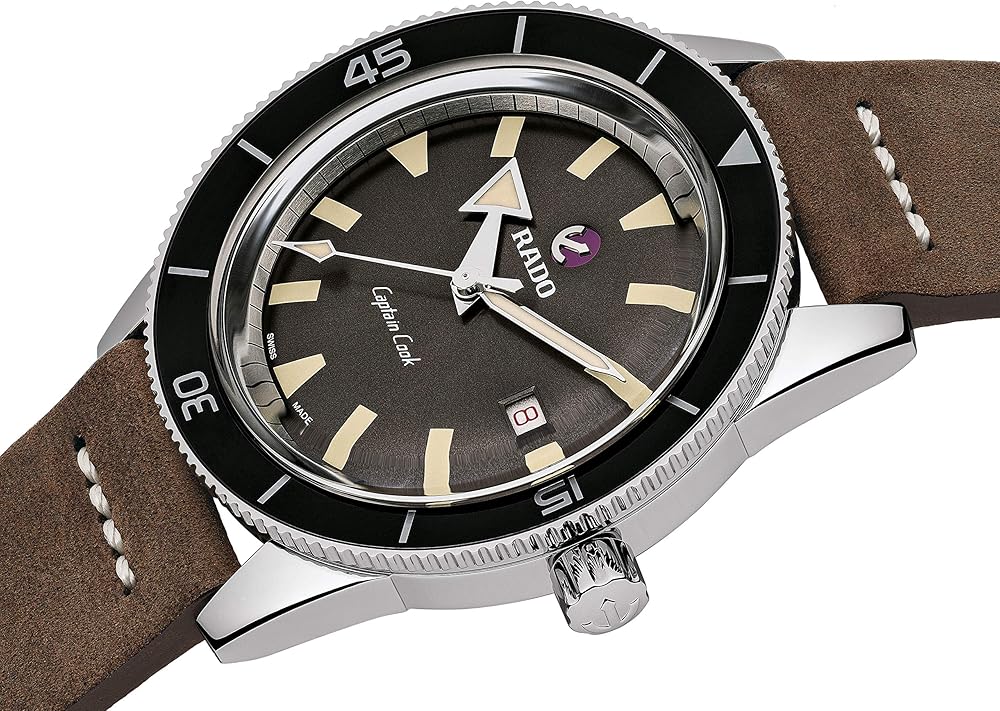 ساعة رادو للرجال كابتن كوك جلد سويسرية اتوماتيكة، بني (R32505305), بني, ساعة اوتوماتيكية
