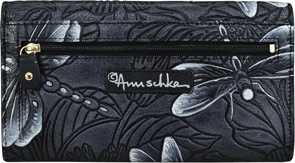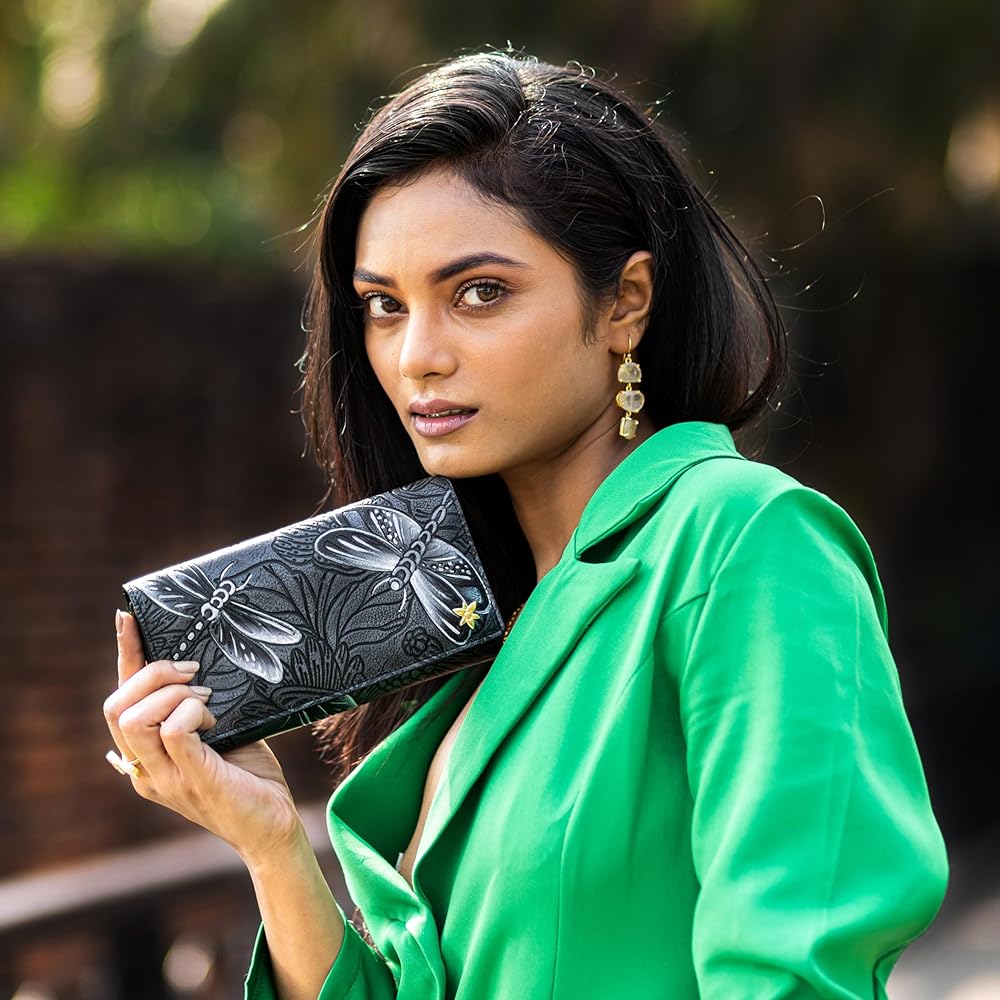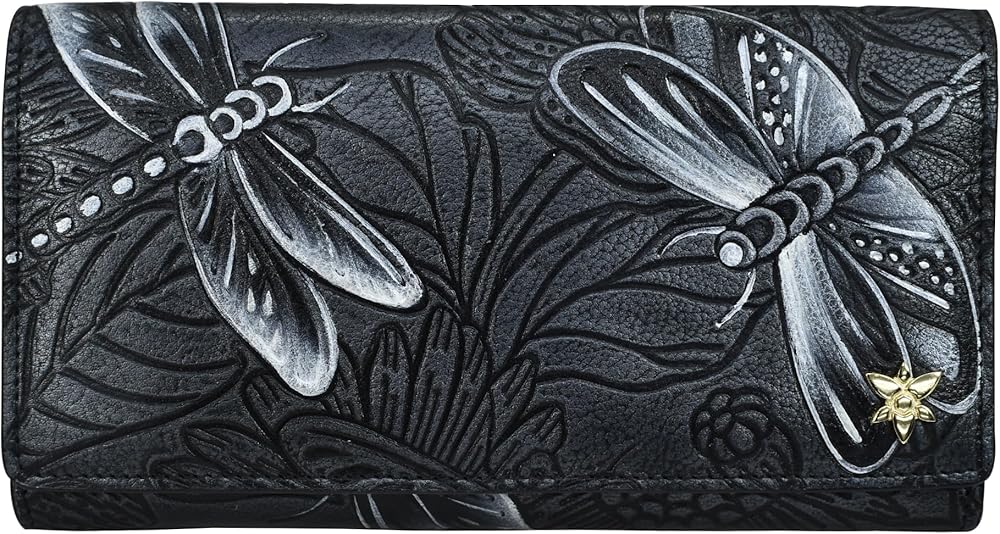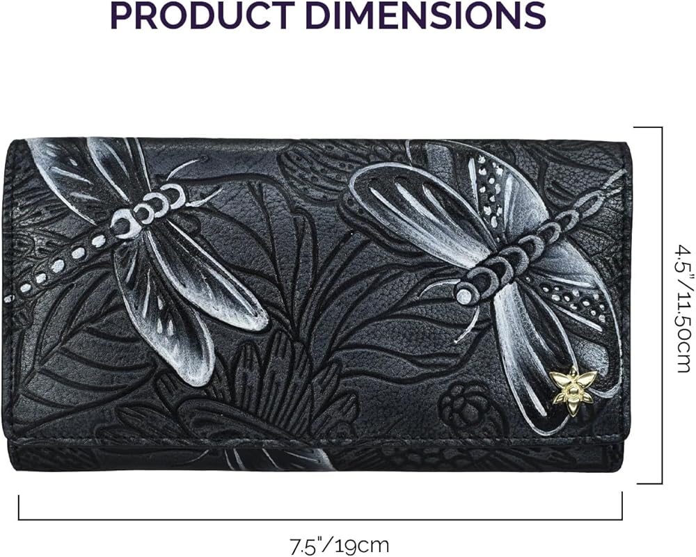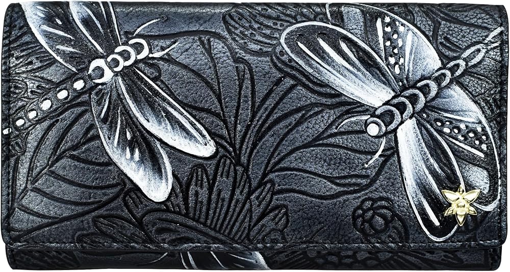 TOOLED DRAGONFLY MEADOW ARTWORK - Each wallet is hand-painted to create a piece of art inspired by nature and vintage themes. Bring your croc design to life with tooled finishes to create a metallic effect painted in a meadlow color