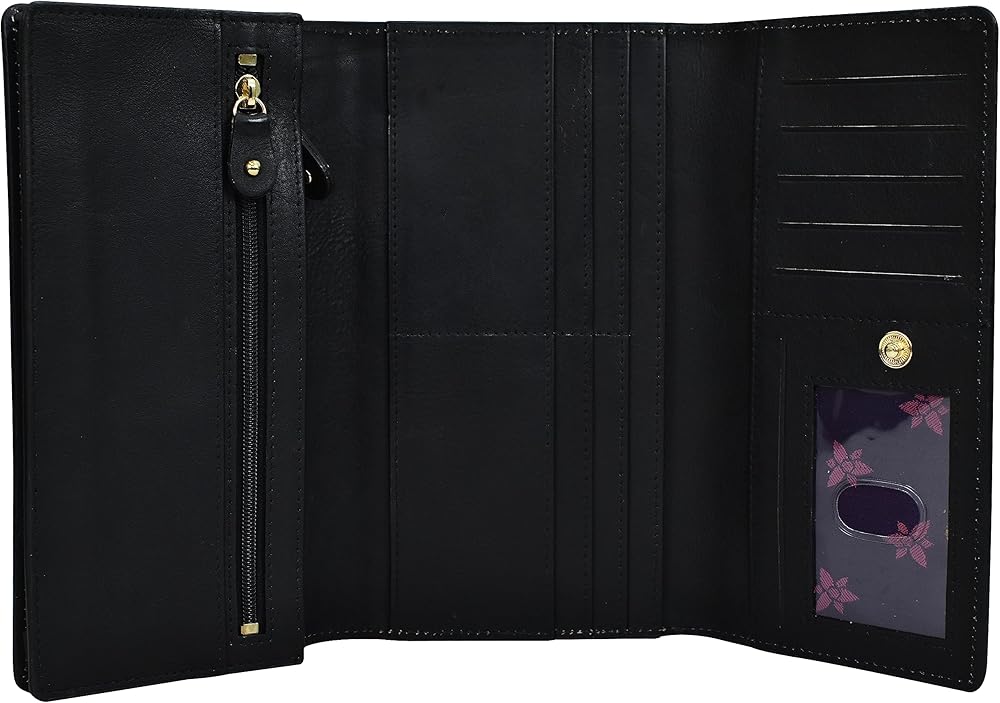 FUNCTIONAL DESIGN - Designed for both beauty and form, the wallet features a flap open entry with adjustable snap closure, 3 full-length slit and 2 zip pockets, 11 RFID card slots, 1 ID window, 1 gusset compartment, a rear zip pocket & slit pocket combo
