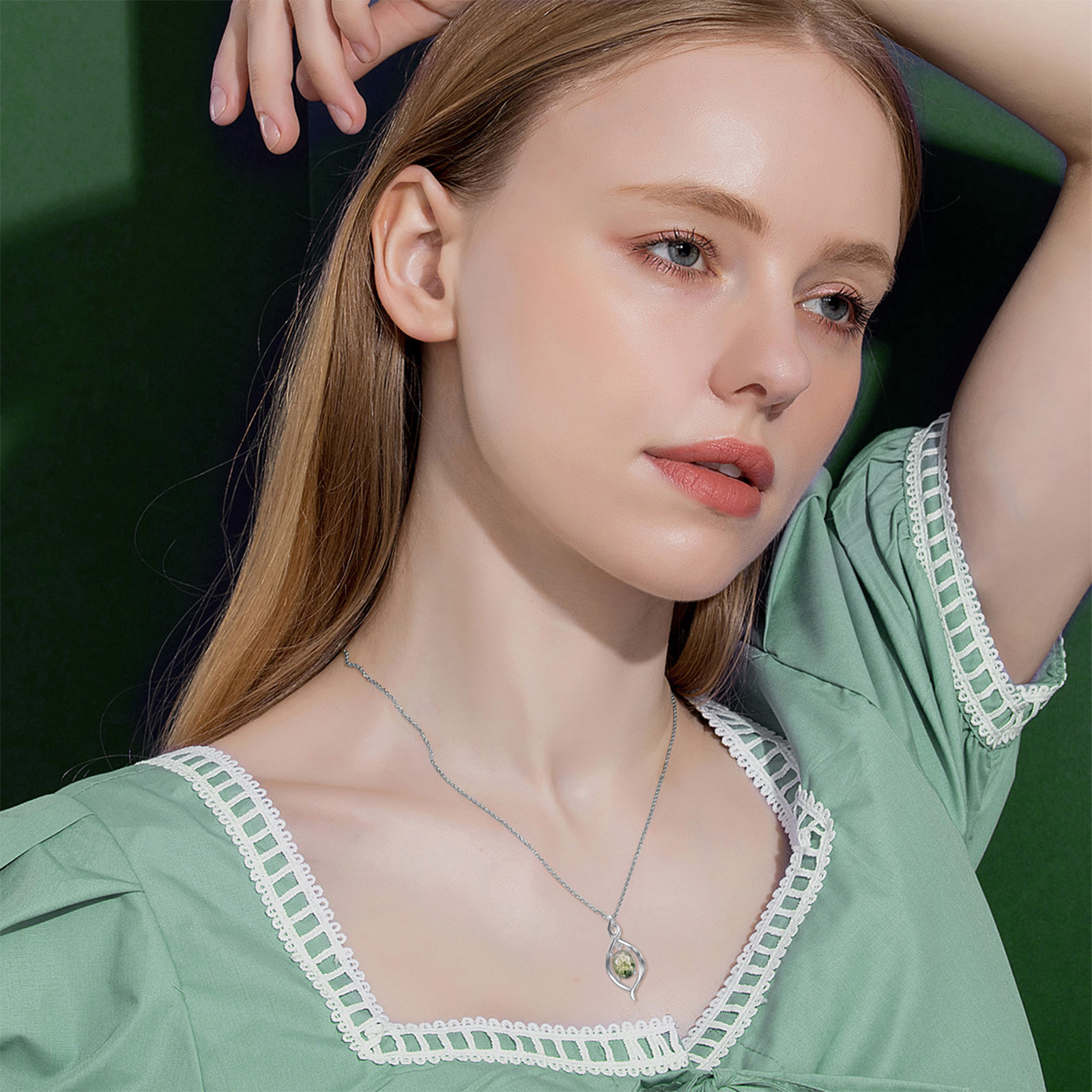 ايوبس عقد من الفضة الاسترليني عيار 925 بتصميم انفينيتي من العقيق الاخضر بتصميم انفينيتي للنساء من الفضة الاسترلينية, فضة استرلينية, العقيق