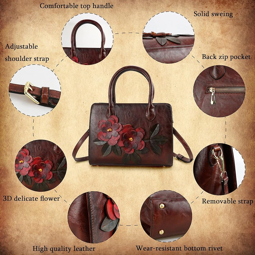 السمات: إنها محفظة كروس ذات تصميم عتيق مع نمط زهرة ثلاثي الأبعاد. يتم خياطة كل زهرة بواسطة سيد. أنيقة وخاصة. إنها حقيبة كتف عملية للاستخدام اليومي، والاستمتاع بالمواعدة، والحفلات، والذهاب للتسوق، والسفر وأي مناسبات أخرى عندما تكون هناك حاجة إلى حقيبة كبيرة.