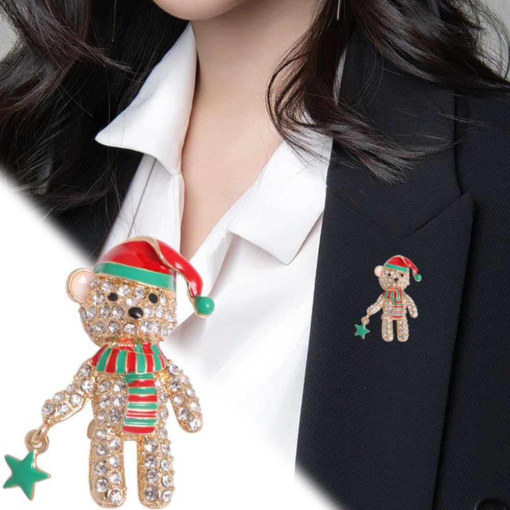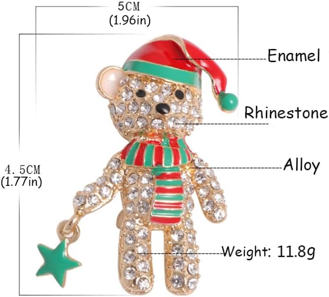 ♥ الحجم والنمط ♥ ارتفاع دبوس بروش دب عيد الميلاد: 45 مم (1.77 بوصة)، عرض دبوس بروش حجر الراين: 50 مم (1.96 بوصة). يرجى التفضل بالرجوع إلى صورة المنتج.