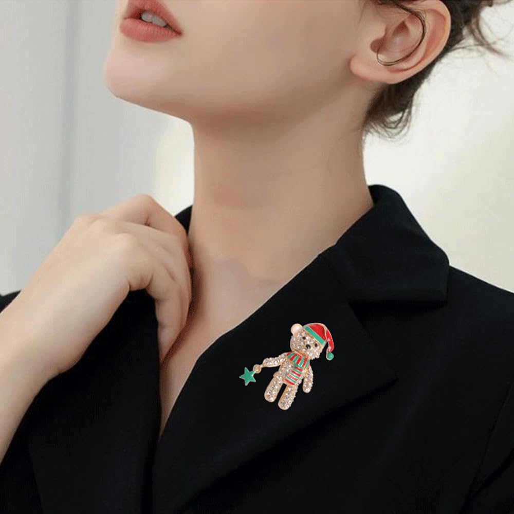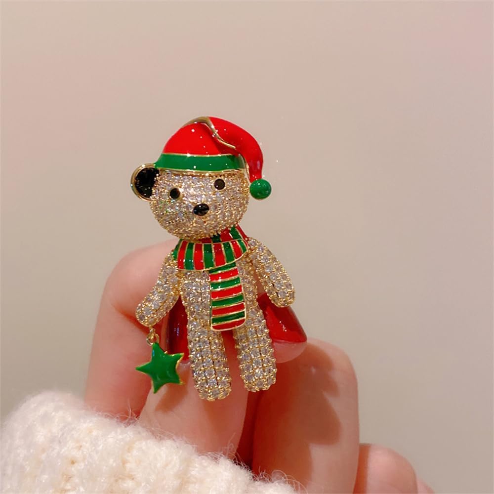 لذيذ حجر الراين عيد الميلاد الدب بروش دبوس للنساء في سن المراهقة الفتيات الأزياء كريستال المينا الكرتون الحيوان التلبيب دبابيس لطيف زخرفة اللباس الملحقات عيد ميلاد عيد الميلاد الذكرى السنوية المجوهرات هدية