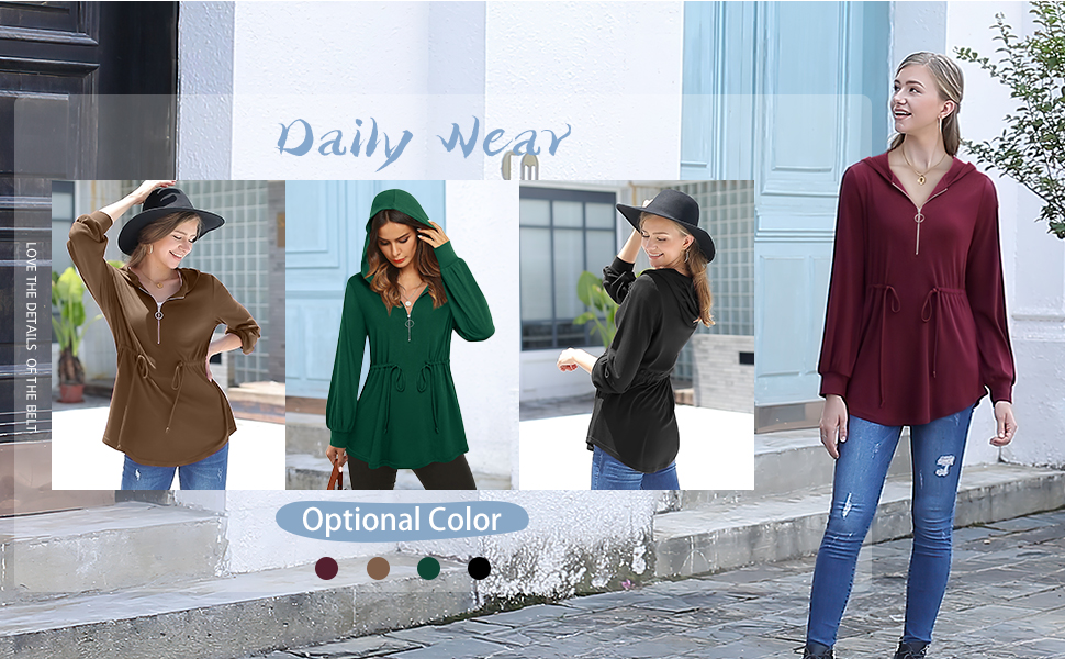 ✅ تصميم خصر قابل للتعديل - يمكن لهذه السترة المزودة بغطاء للرأس بسحاب ربع مع رباط تعديل العرض بحرية. إنه نحيف ورشيق عند ارتداء هذا التونيك ذو القلنسوة، مما يظهر منحنيات جسمك الجميلة للجميع ويحصل على الثناء.