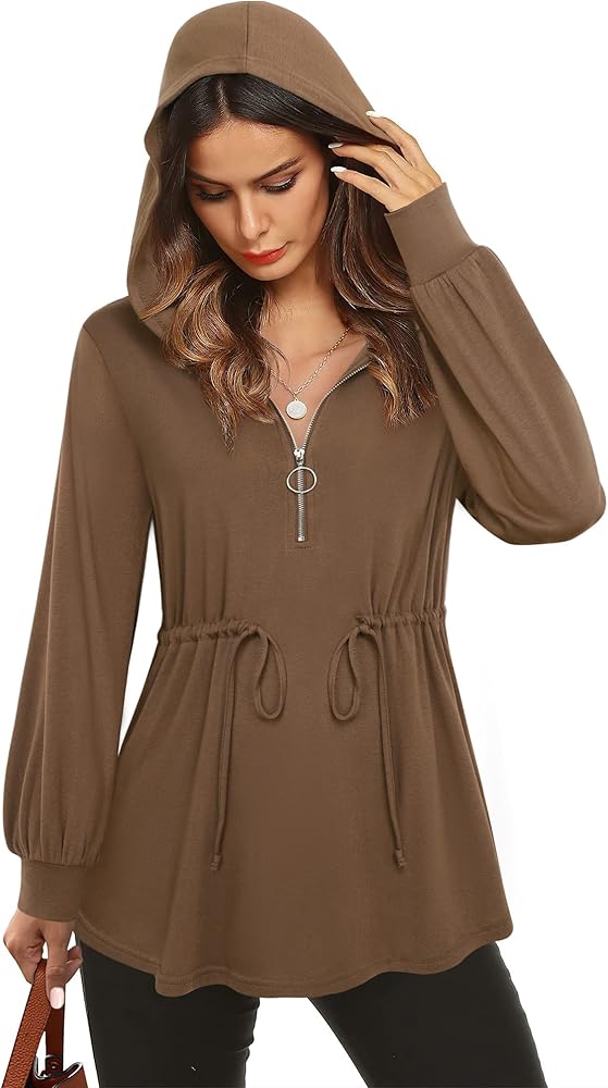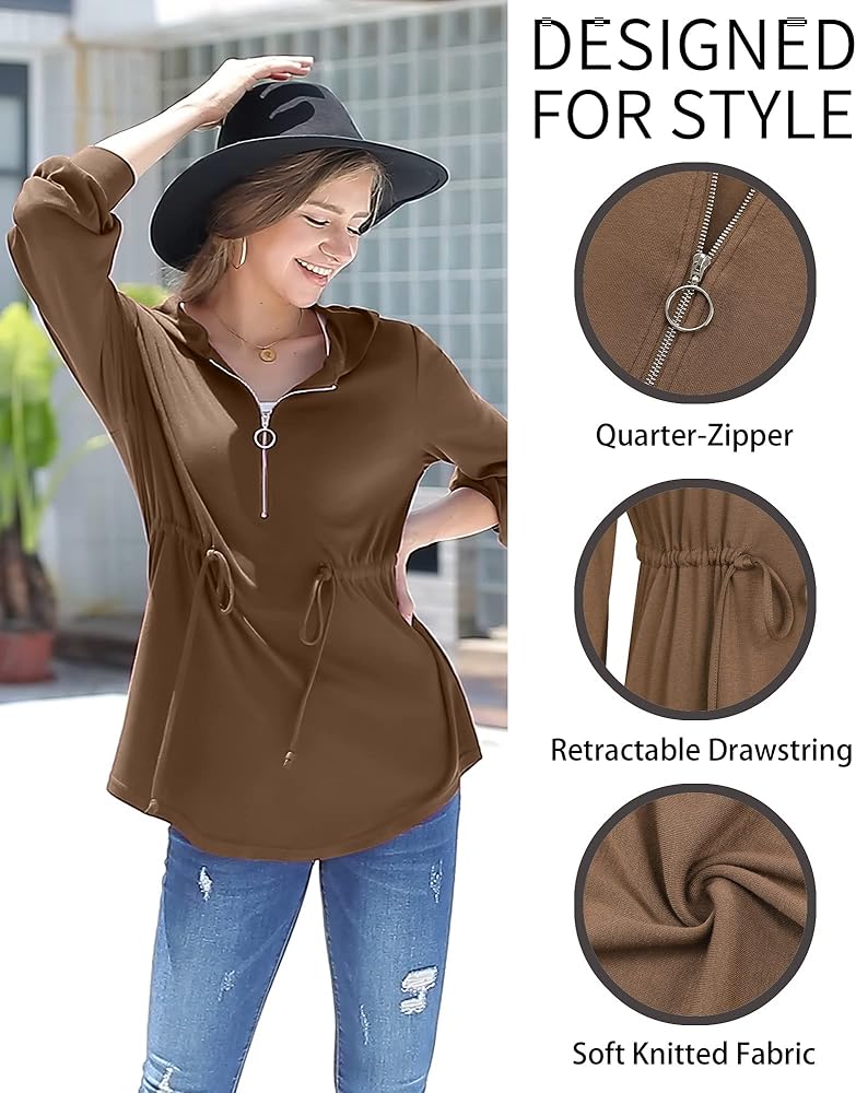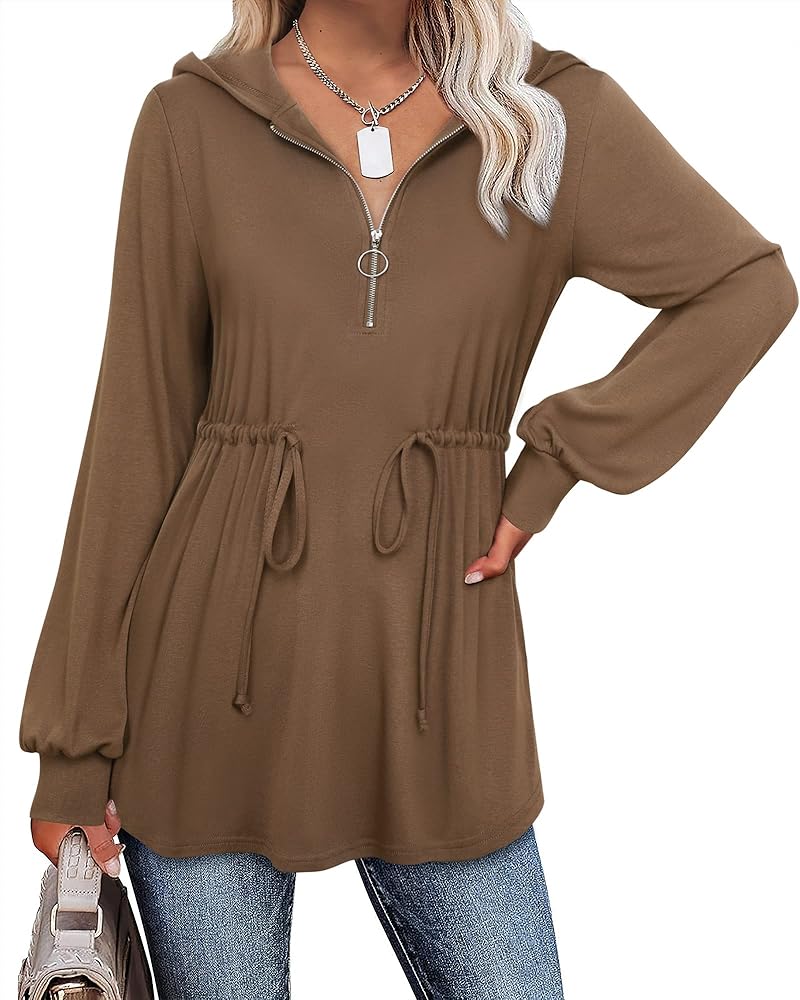 ✅ ميزات الموضة - قمصان تونيك طويلة الأكمام / بلوفر بقلنسوة نصف سحاب / سويت شيرت تونيك على شكل حرف A للنساء / قمصان بقلنسوة بأكمام فانوس / قمصان بقلنسوة برباط / قمصان تونيك خريفية / ملابس شتوية عصرية 2022