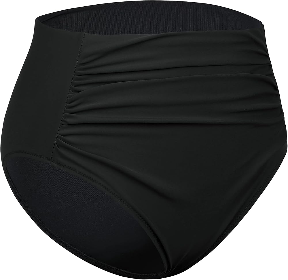 - جزء سفلي بيكيني عالي الخصر، مقدمة مكشكشة مع بطانة للتحكم في البطن تغطي بعض العيوب وتشكل جسمك، تجعلك تبدو أكثر نحافة.