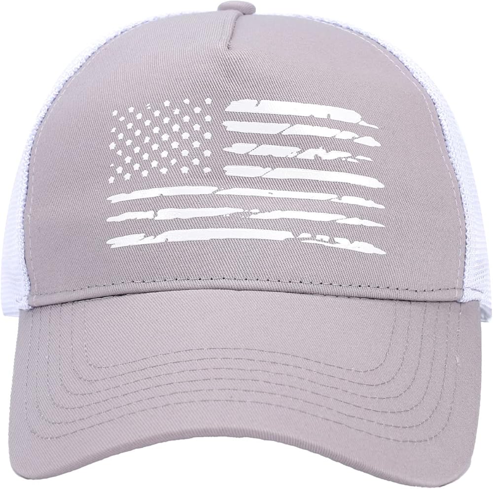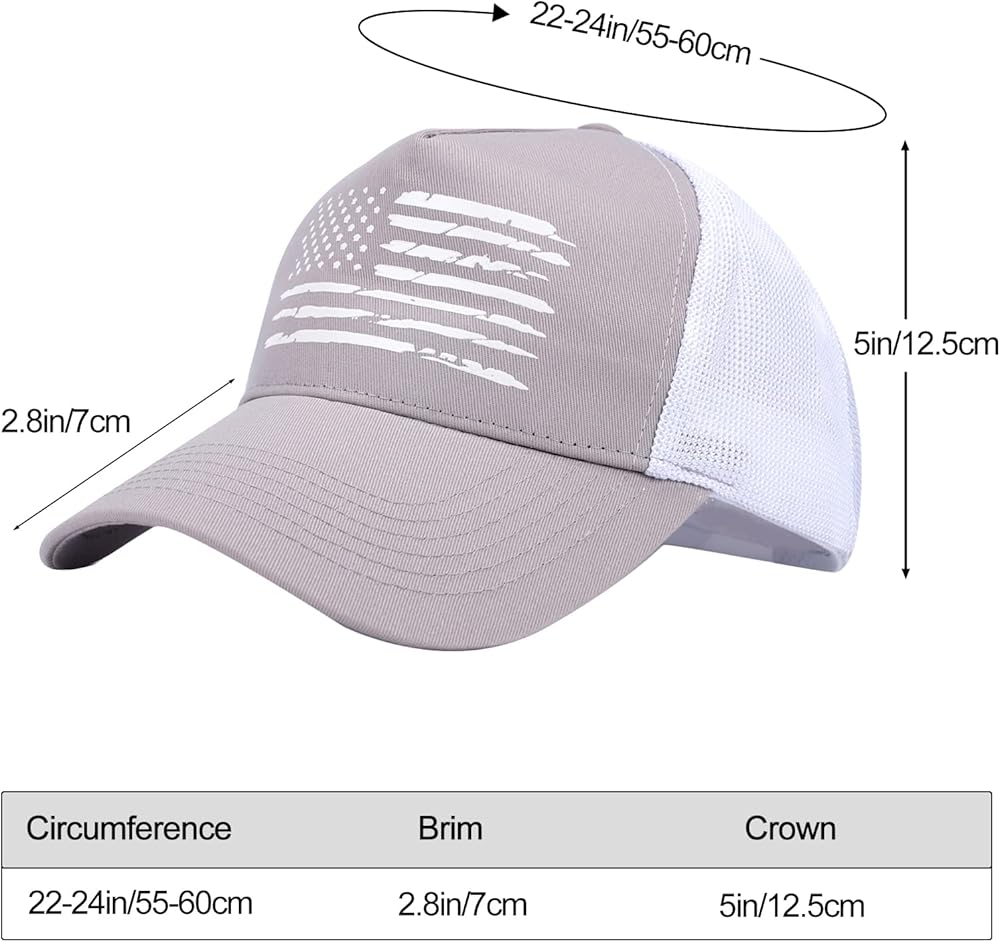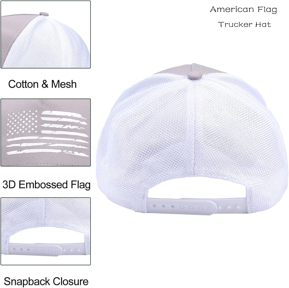 • مواد عالية الجودة - الألواح الأمامية للقبعة مصنوعة من نسيج قطني مضلع بنسبة 100%، مناسبة ومسامية ومريحة. العلم الأمريكي منقوش على القبعة لتحقيق أقصى قدر من المتانة. لن يتمزق أو يبهت بمرور الوقت، جودة استثنائية. تعمل الشبكة المدمجة على طرد العرق لتبقيك منتعشًا وجافًا.