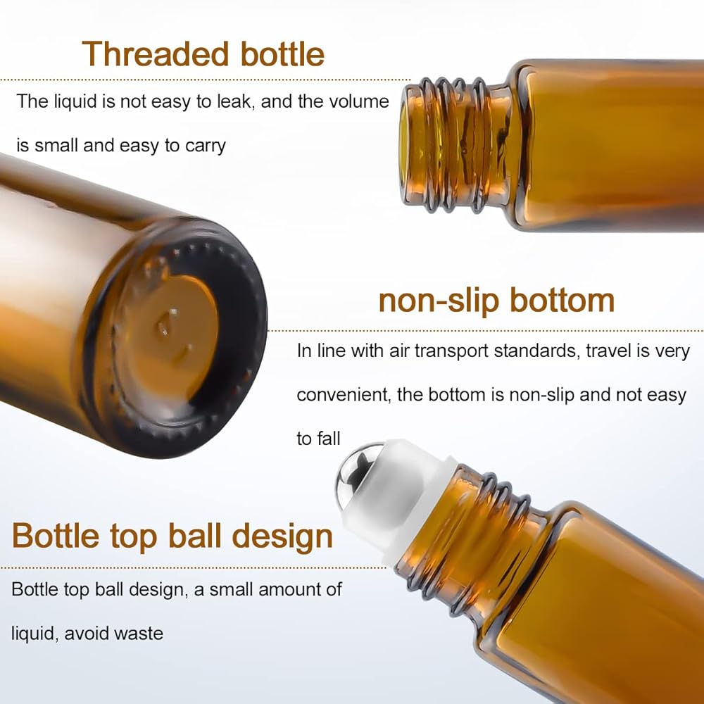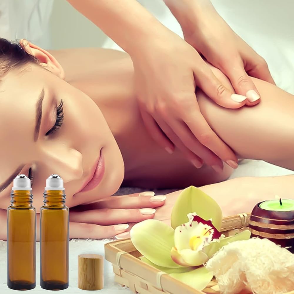 Brown Glass Roll-on Bottles10pcs Amber Glass Essential Oil Roller Bottles 10ml Empty Refillable Roller Bottle With Natural Bamboo Lid Stainless Steel Ball Glass Aromatherapy Travel Perfumes Bottles