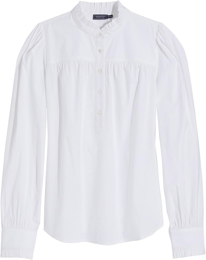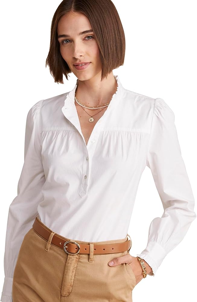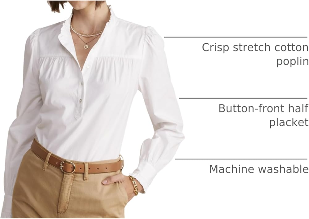 In our crisp stretch cotton poplin with a hint of romantic ruffles, our signature popover is your M-F instant outfit fix. Just add white denim.