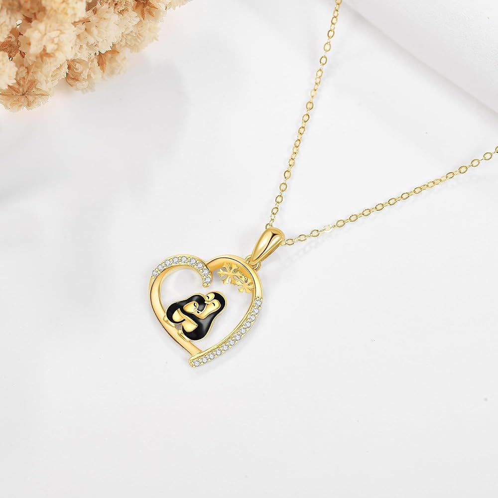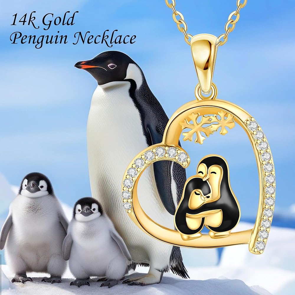 • مستوحاة من التصميم: تعرض قلادة البطريق عيار 14 قيراط اثنين من البطريق الرائعين الموجودين في إطار على شكل قلب مزين بالزركونيا المكعبة المتلألئة ولمسات ندفة الثلج الرقيقة. ترمز هذه القلادة الساحرة إلى الحب والرفقة والوحدة، وهي بمثابة تذكير بالبهجة التي تأتي من حضور أحبائك.