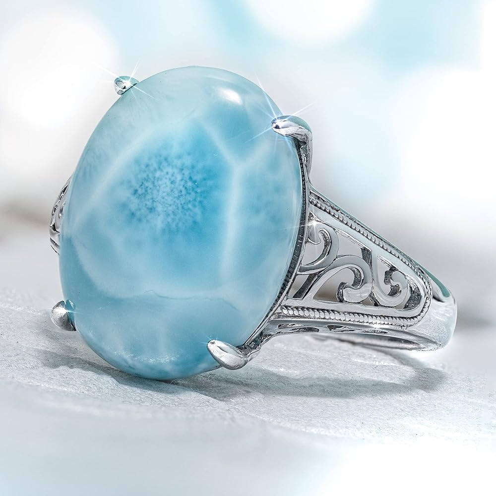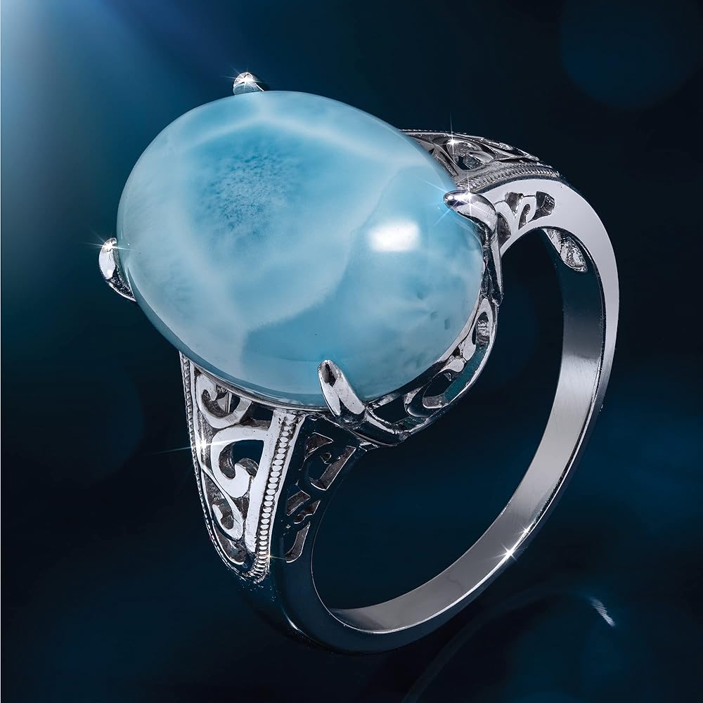 Stauer - خاتم لاريمار بحر الحب للسيدات، 7 1/2 قيراط قطع بيضاوي لاريمار