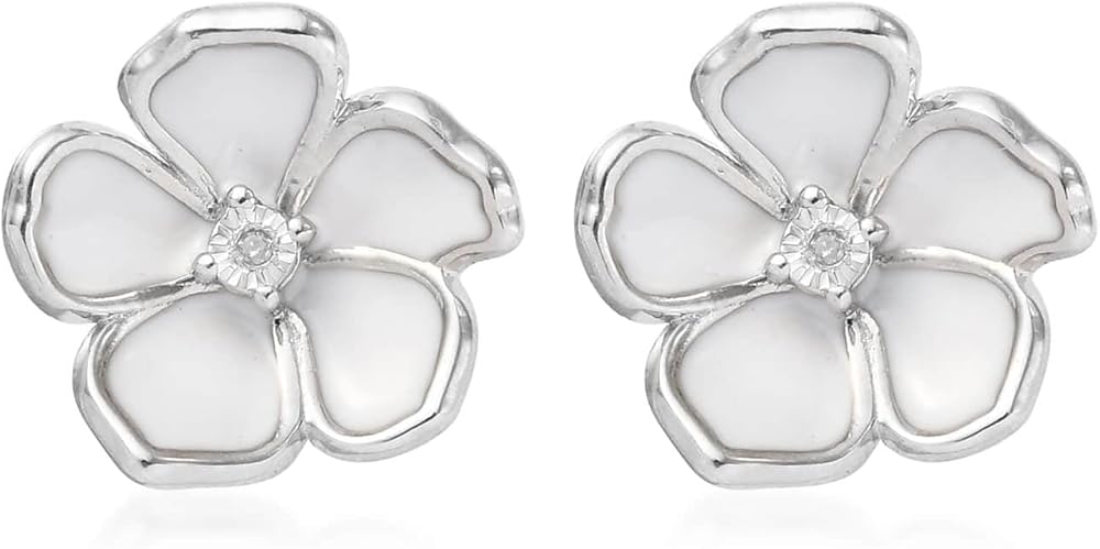 The jaw-dropping beauty of these breathtakingly beautiful diamond accent flower ring will win your heart. These pieces of jewelry communicate the floral beauty of nature in a perfect shape. These earrings deserve to be starred for a while.·, Etched in stamped 925 sterling silver, with platinum finish·, Features flower shape in pure white color·, Flawless epitome of lily flower·, Glittering diamond is weaved in place of grains·, Diamonds are symbol of love and part of eternity·, White diamonds are pure natural beauty with no treatment