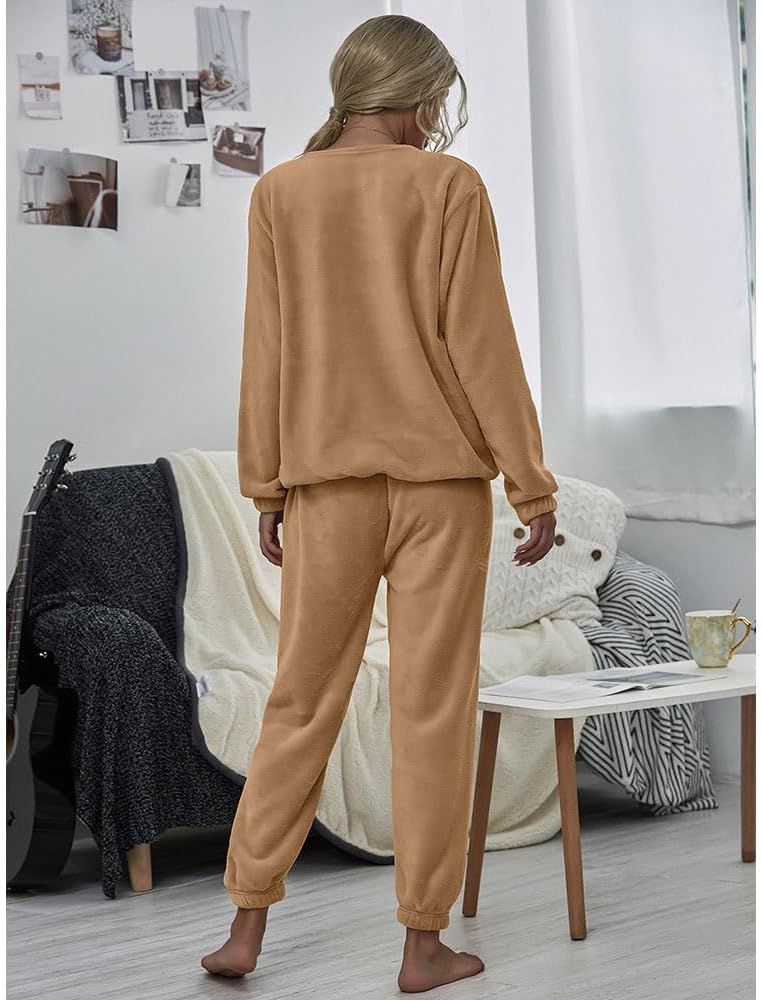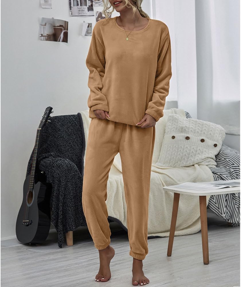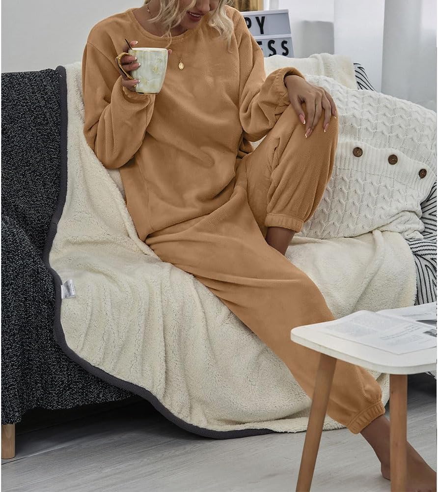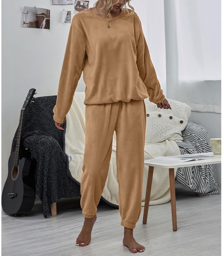 ★ تصميم مريح: بيجامات شتوية للسيدات من الصوف، بلوفر بأكمام طويلة ومجموعة سراويل مرنة عالية الخصر. تتميز مجموعة بيجامات الصوف الصلب بمقاس مريح، ملابس نوم نسائية برقبة دائرية مكونة من قطعتين من ملابس الاسترخاء الغامضة.