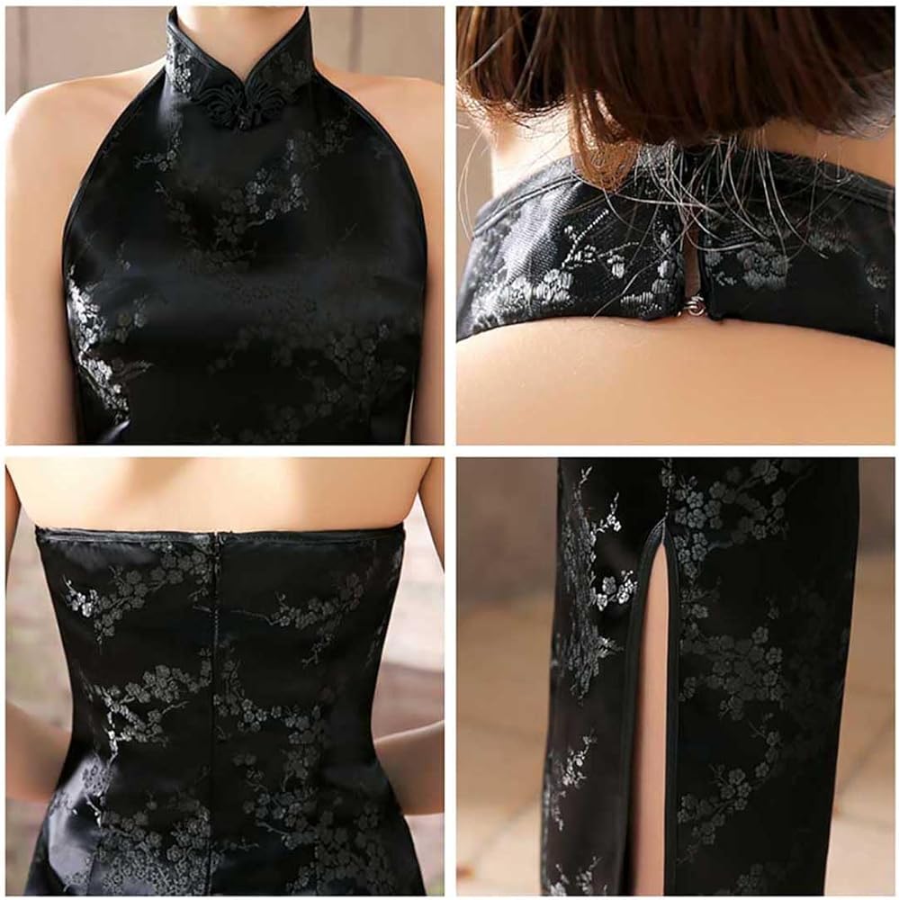 - المزايا: تصميم شيونغسام صيني تقليدي كلاسيكي. إبزيم قديم، فتحة جانبية عالية، نسيج ساتان مريح. ياقة يوسفي مريحة.