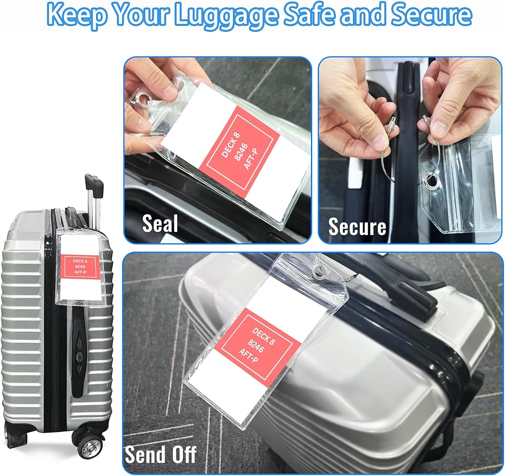 • [4 Cruise Luggage Tags] - Our cruise luggage tags come in a set of 4, each with zip seal and a steel loops, the tag holders help you quickly identify your luggage, preventing loss or confusion, and allowing you to quickly grab your belongings and start your adventure.