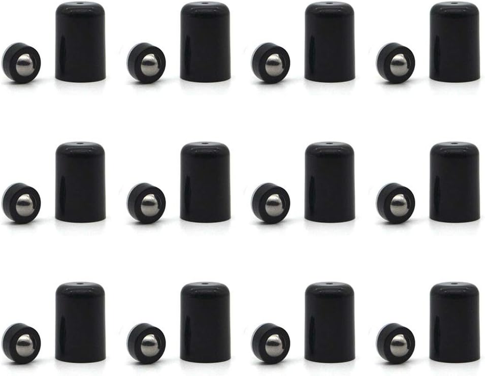 محتويات العبوة: 12 قطعة من الكرات الدوارة المصنوعة من الفولاذ المقاوم للصدأ و12 قطعة قبعة باللون الأسود.