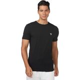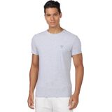 تي شيرت بيسيك بأكمام قصيرة ورقبة دائرية بدون طوق من قماش مطاطي