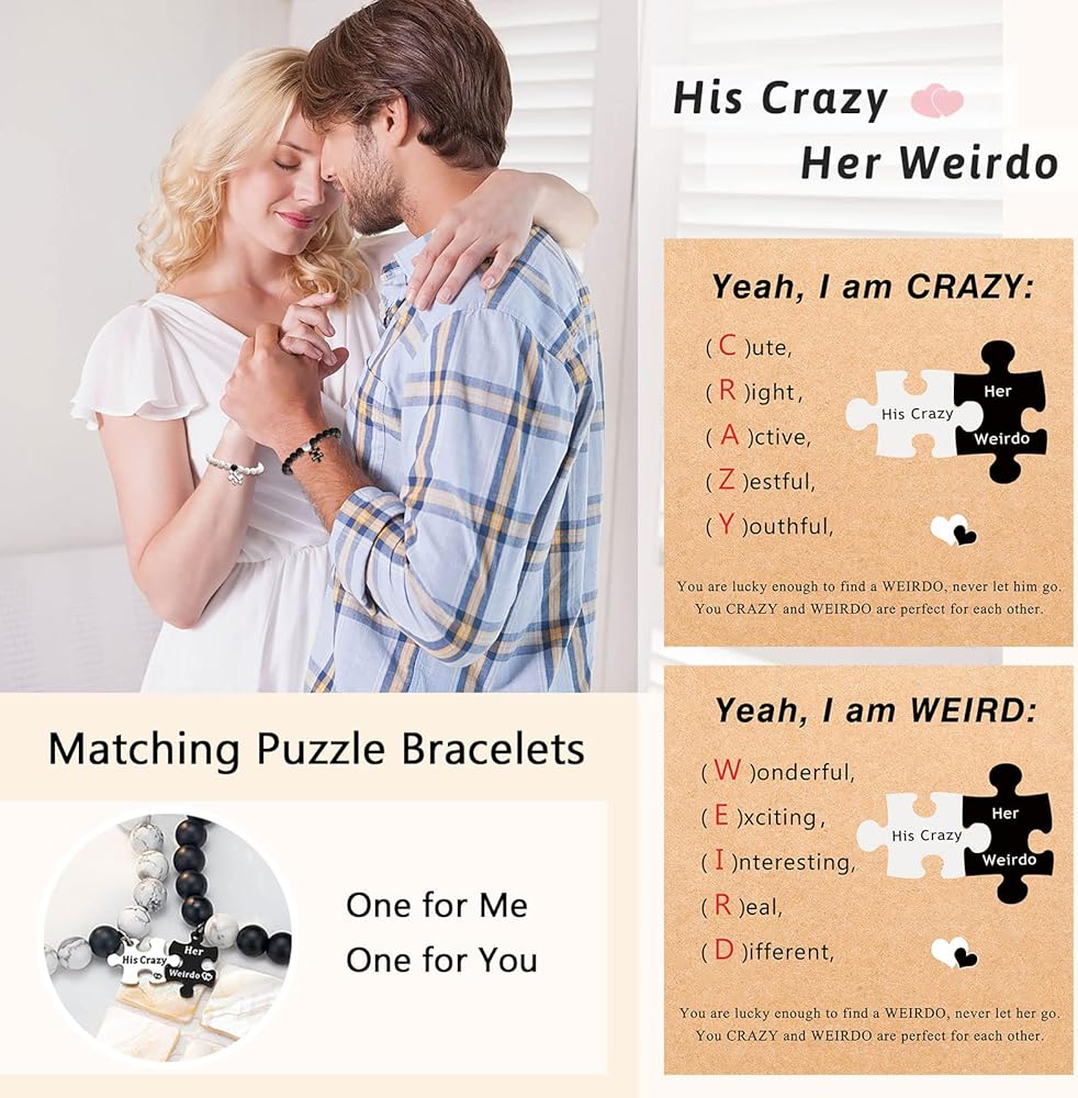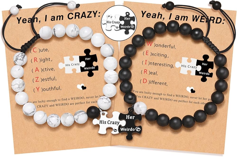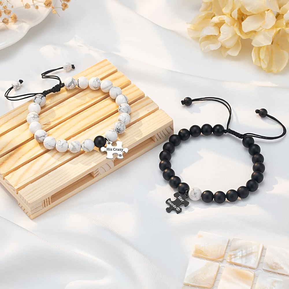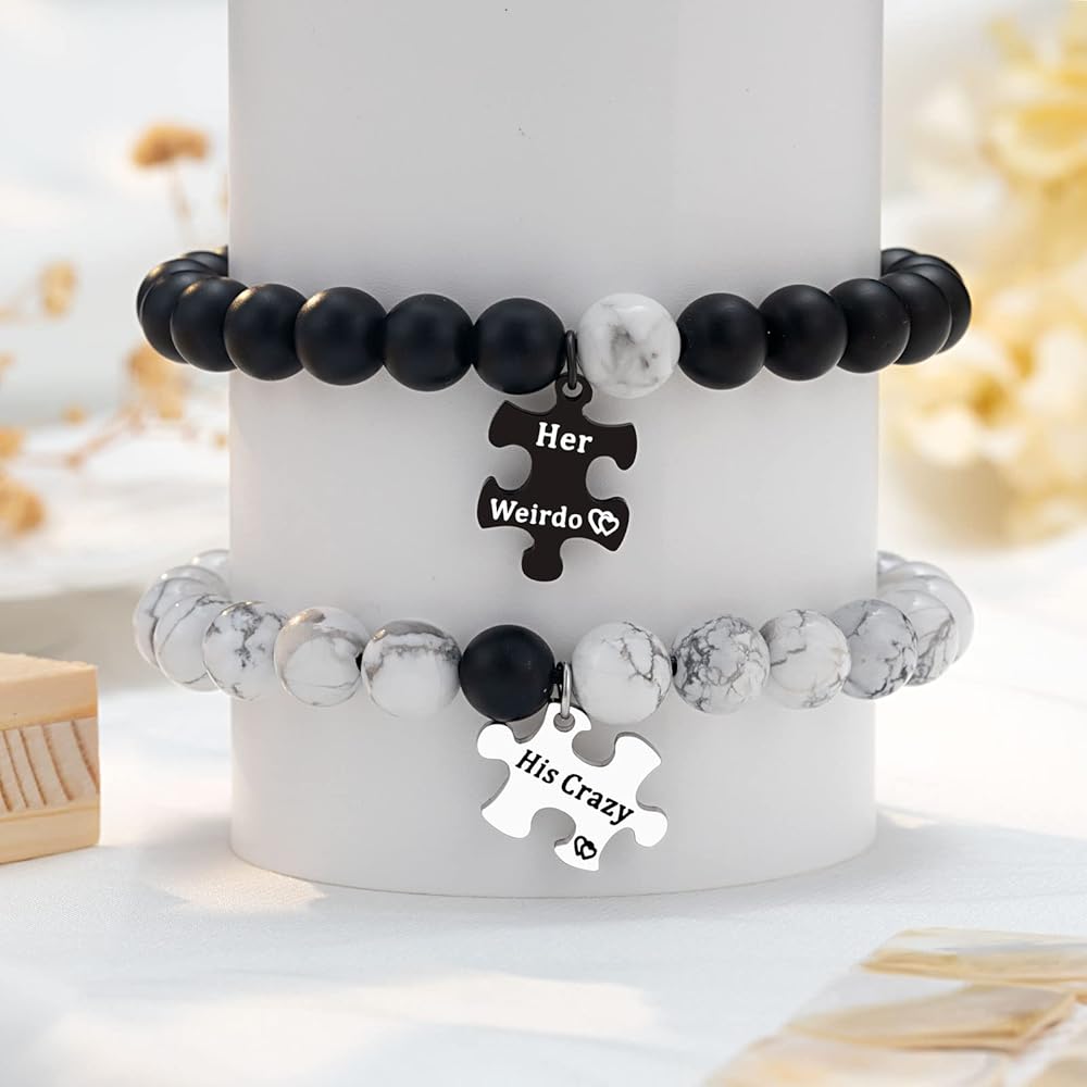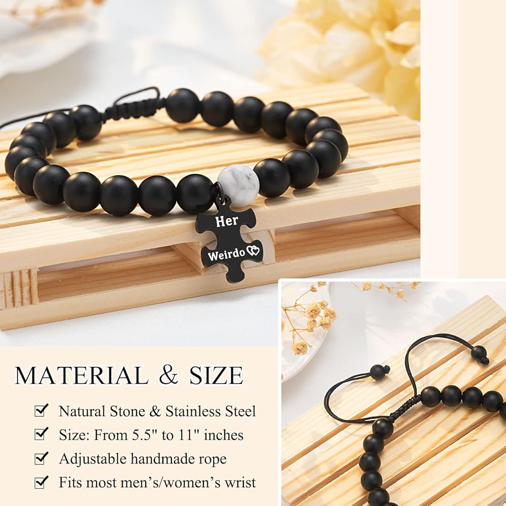 • 【أساور له وأساور لها】أساور للأزواج متطابقة مع كلمات منقوشة "His Crazy" و"Her Weirdo"، واحدة لك وواحدة لي. بغض النظر عن المكان الذي نذهب إليه، بغض النظر عما نفعله، سوف تكون معي دائمًا، وسوف أكون معك دائمًا.