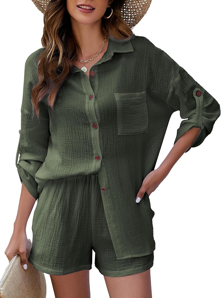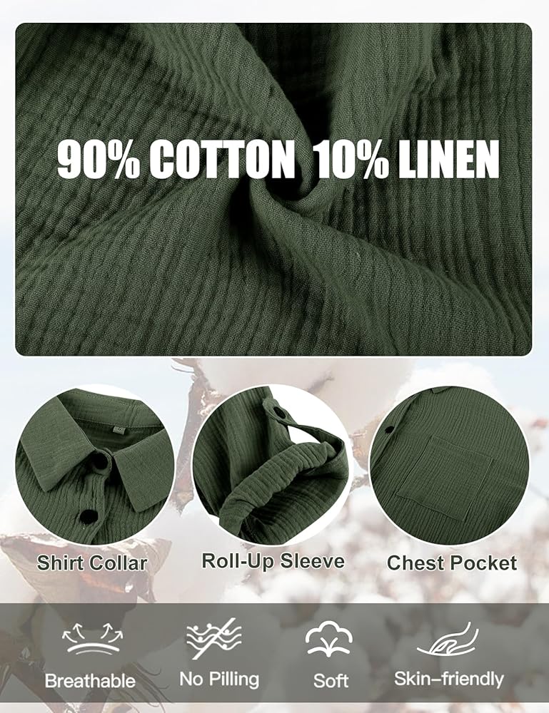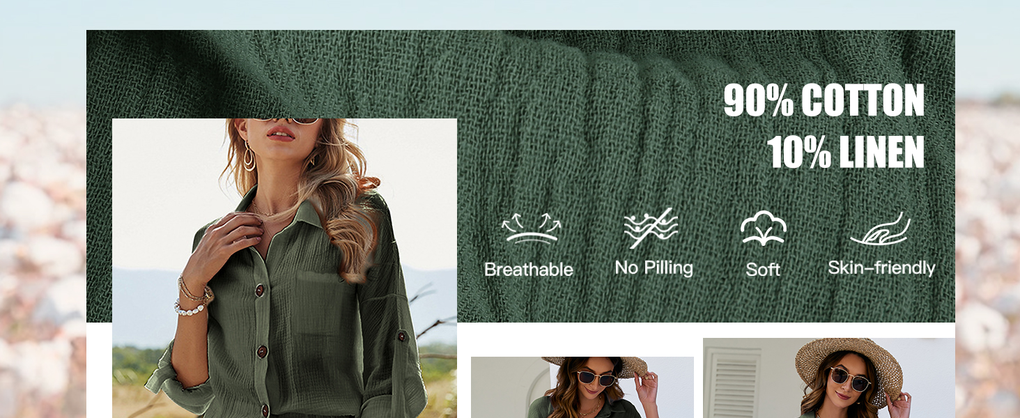 الخامة: طقم الكتان النسائي المكون من قطعتين مصنوع من قماش قطني خفيف وناعم وكتان أقل مرونة، مما يجعله أكثر مقاومة للاهتراء وأقل عرضة للتجعد من مواد الكتان الأخرى. كما أنه جيد التهوية ولطيف على البشرة، مما يوفر أقصى قدر من الراحة خلال الصيف الحار.