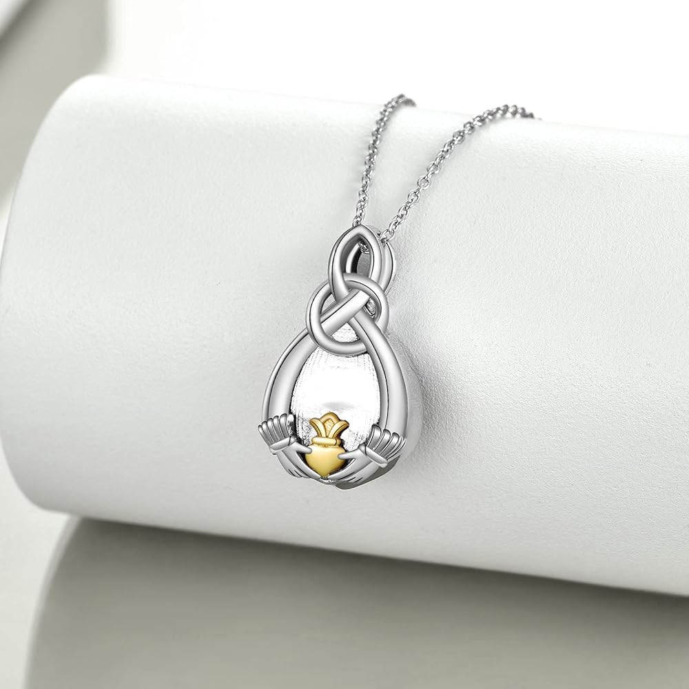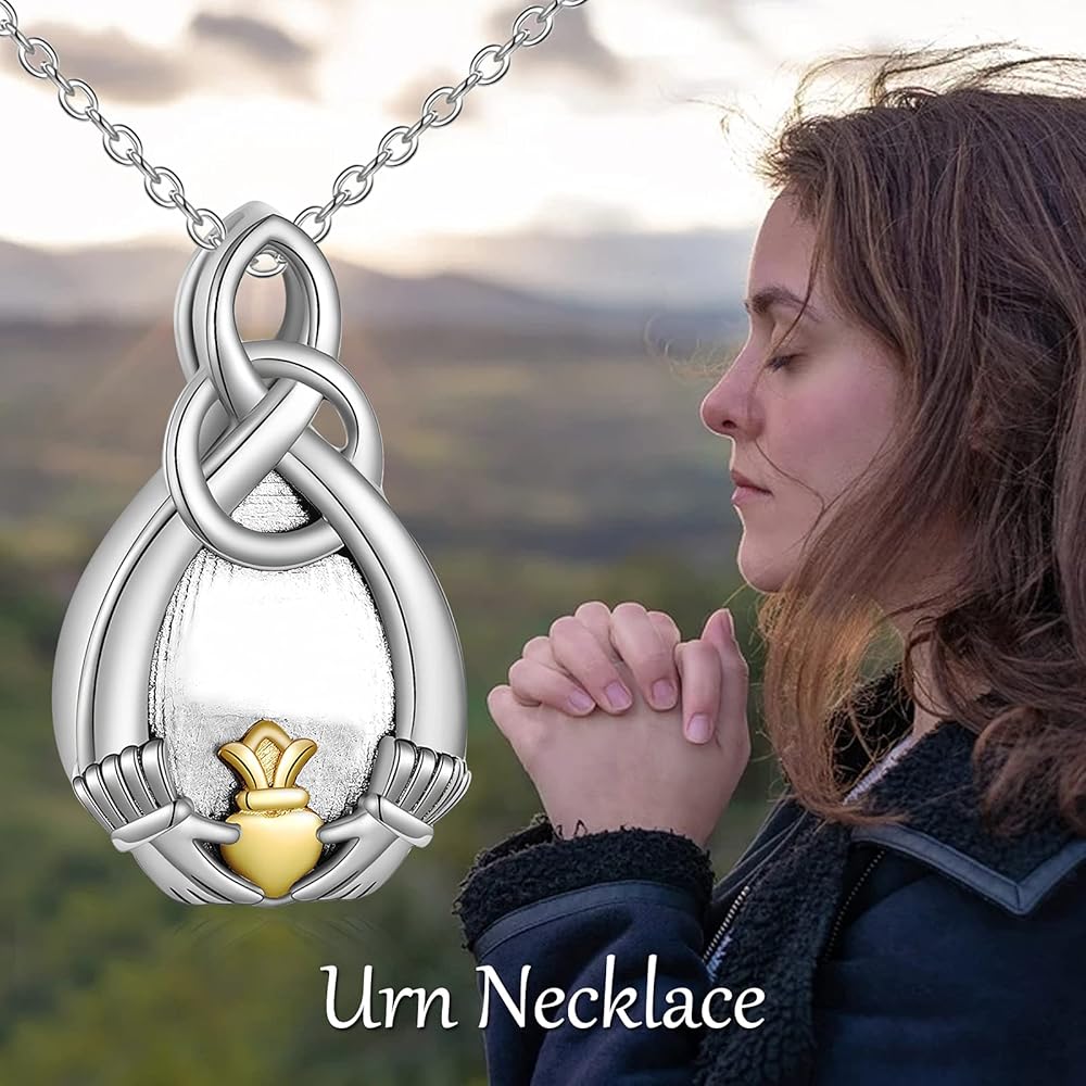 ❤ تجمع قلادة الرماد بين الرمزين الأكثر شعبية في أيرلندا: عقدة سلتيك وكلاداغ كلاهما منغمسان في التاريخ الأيرلندي الغني، عقدة ترينيتي من تريكترا هي الإيمان السلتي القديم الأبدي، ومعنى: الحب والولاء والصداقة، والإيمان، والصداقة كانت دائمًا مع أنت.