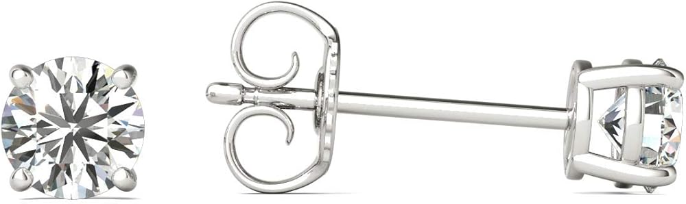 1/2 carat total weight solitaire diamond earring studs. AGS Certified. Color-GH or better. Clarity-I2-I3. Polish-very good. Symmetry-very good. 14K nickel free/hypoallergenic white gold. Friction/Push backs. Estimated retail value $905.00. These are 100% natural conflict free diamonds. Cut and polished at our diamond cutting and polishing facilities, using state of the art technology, to bring out the maximum luster, brilliance and fire in the diamonds. Custom set in NYC and stamped with our brand logo. Every item is quality checked by GIA certified gemologists and packed in our branded gift box before being shipped to you.