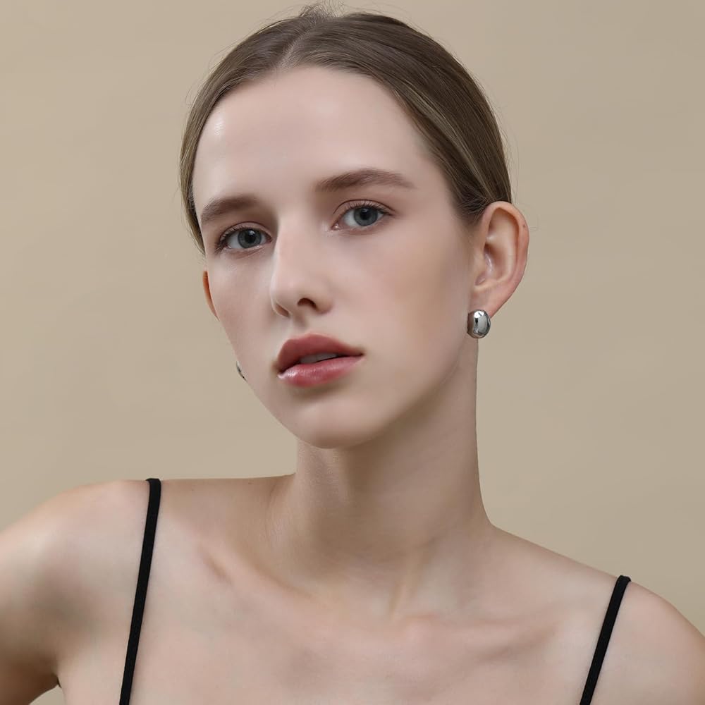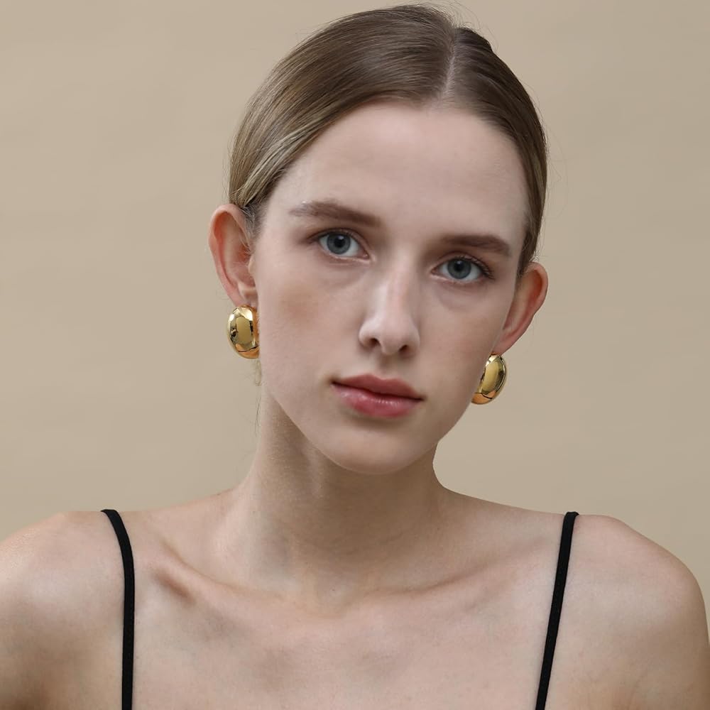 Apsvo مكتنزة الذهب / الفضة هوب أقراط للنساء، بيان أقراط هيبوالرجينيك أقراط مطلية بالذهب الأزياء والمجوهرات