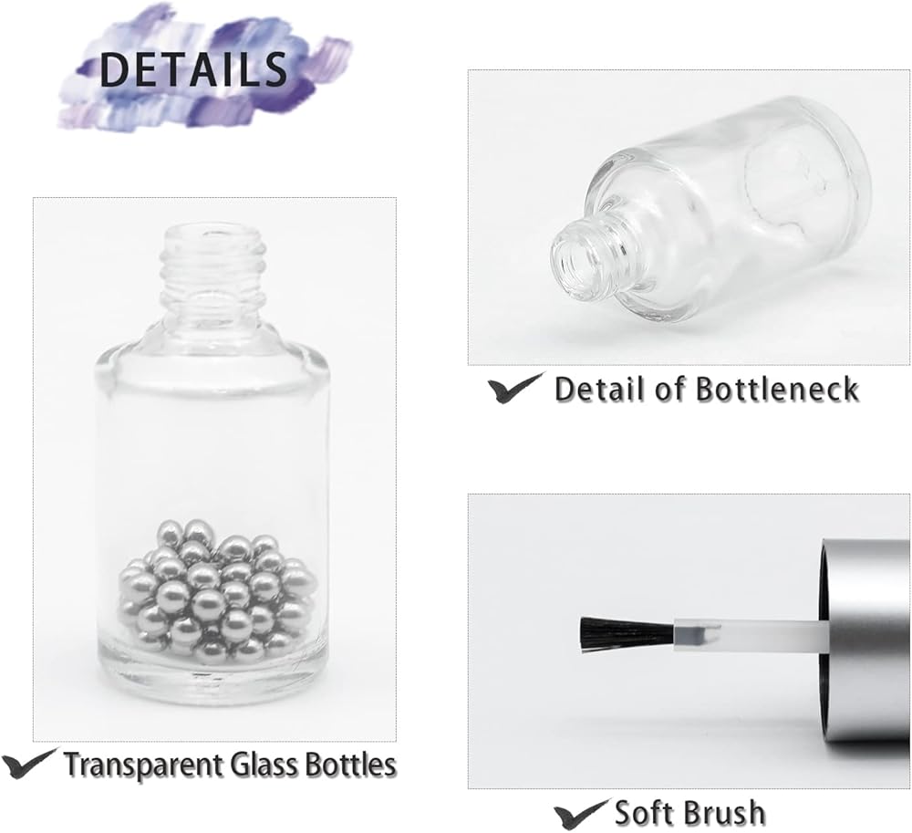 √Application--Perfect for storing nail polish, paint, essential oil or other laboratory liquids. Use them for mixing and creating new nail polish colors or textures, adding glitter and much more.