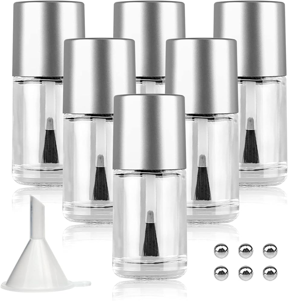 6 x Empty Nail Polish Glass Bottles