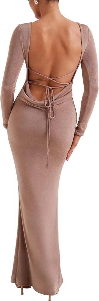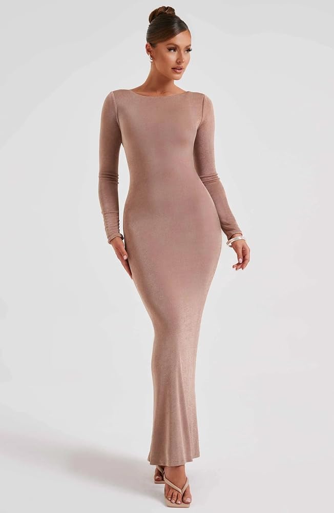 التصميم: هذا الفستان طويل الأكمام مع تصميم مقعر ومحدب على شكل ذيل سمكة يضيف شعورًا مناسبًا، فستان طويل بوديكون يبرز منحنيات الورك المثيرة، مما يجعلك تبدين أنيقة ومليئة بالأنوثة.