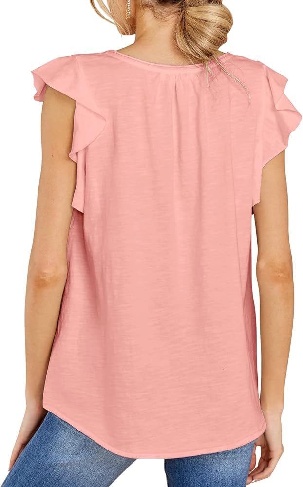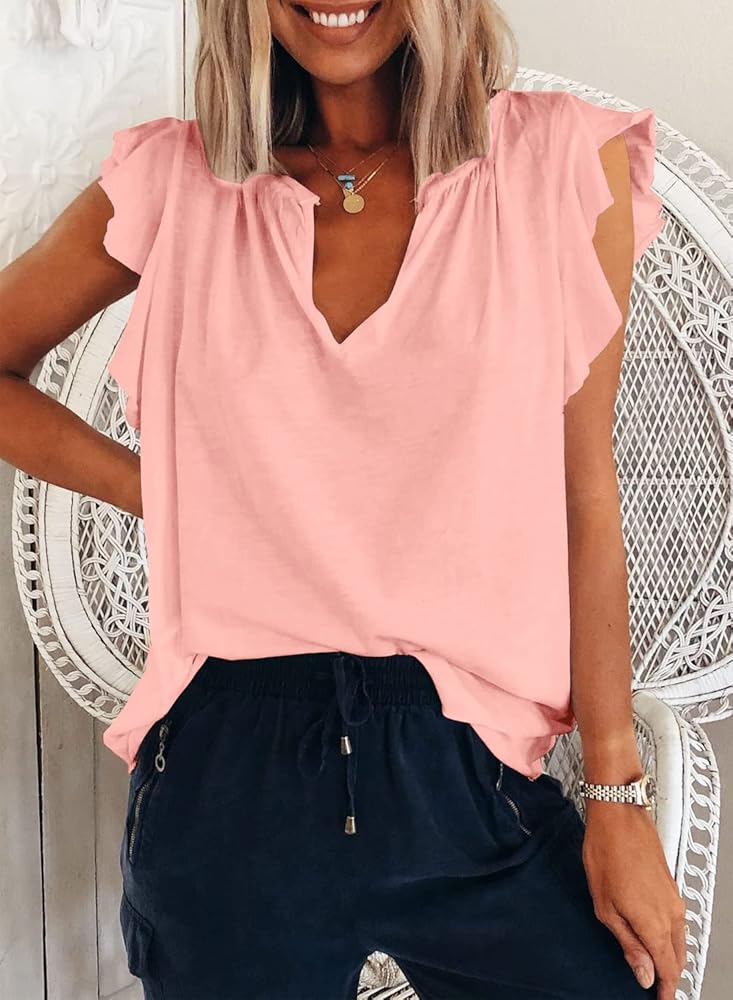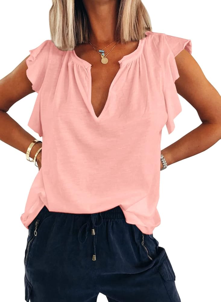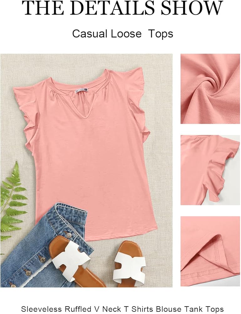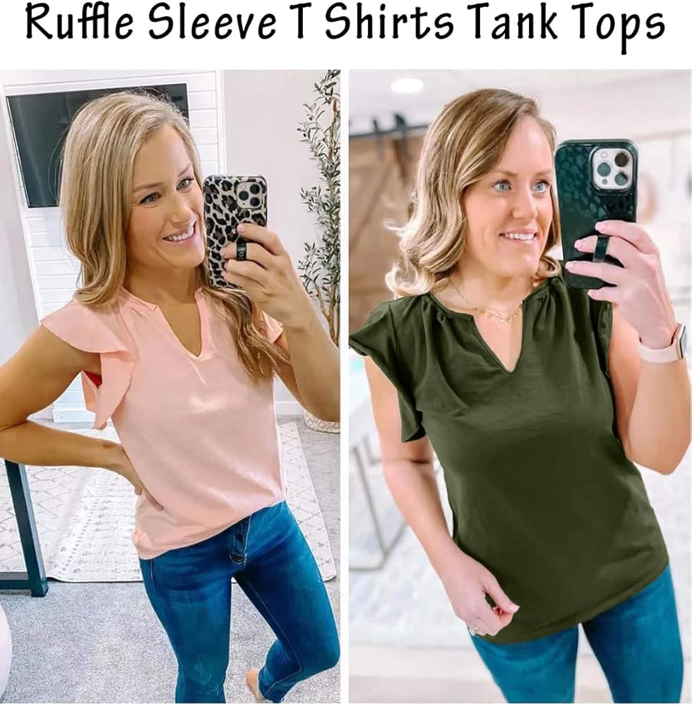 السمات: قمصان بأكمام مكشكشة للسيدات، رقبة على شكل حرف V عصرية وأنيقة مع أكمام قصيرة، كشكشة رائعة مزخرفة بنمط كاجوال، أنيقة وعصرية. تبدو جميلة وأبدا عفا عليها الزمن.