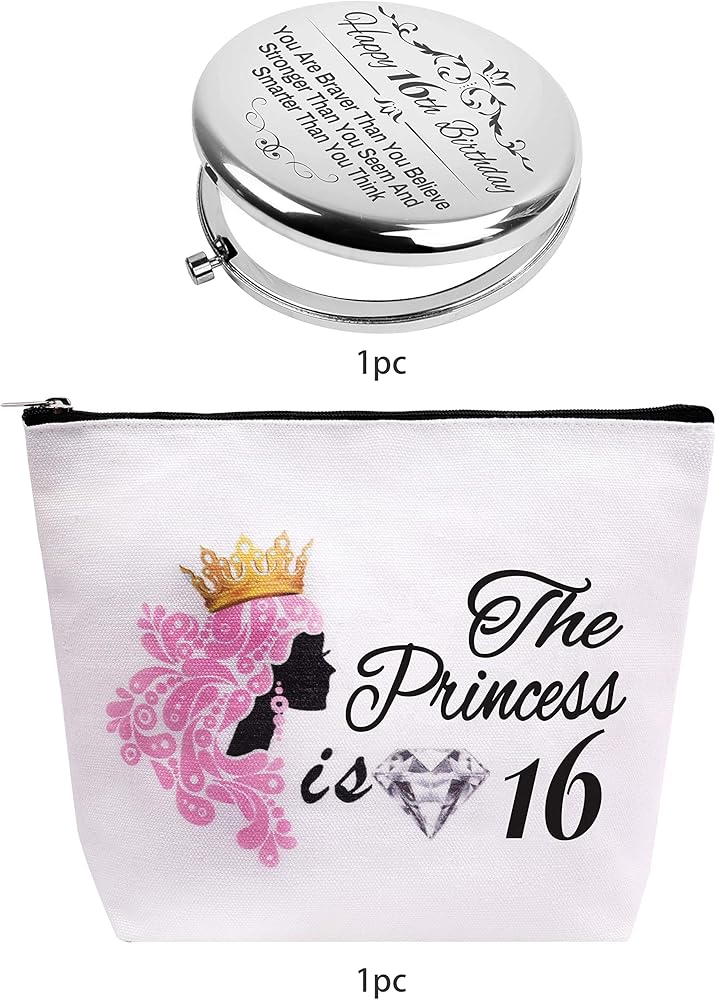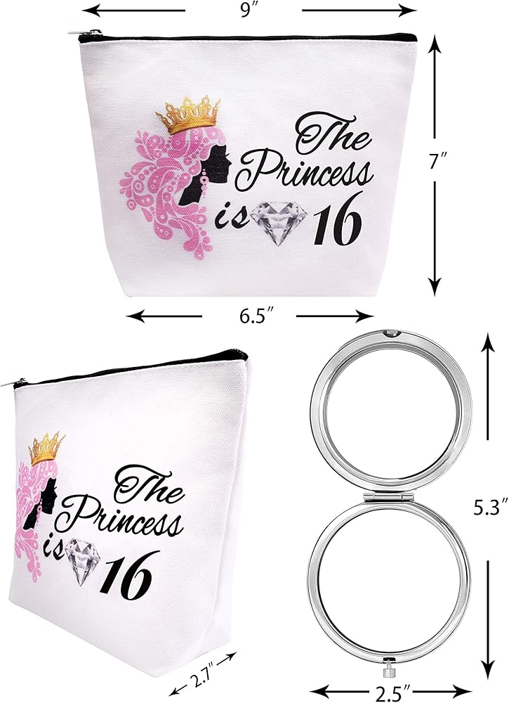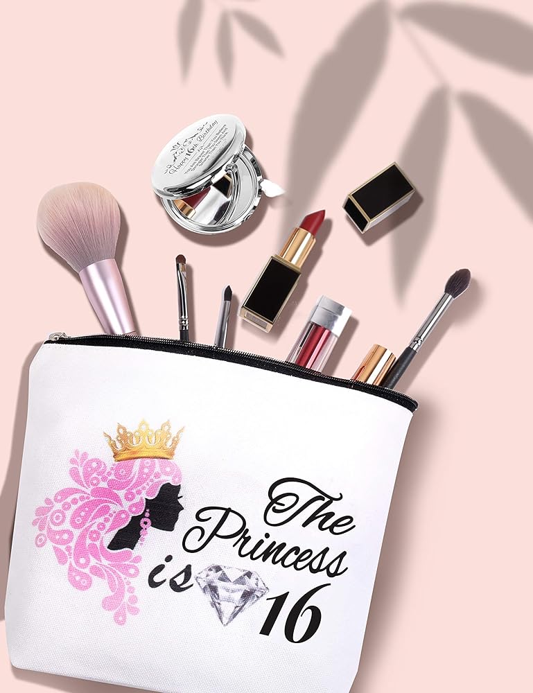 Sweet 16 هدايا للفتيات، أفكار هدايا عيد الميلاد السادس عشر، فتيات بعمر 16 عامًا، حقيبة مكياج لعيد الميلاد السادس عشر، هدية عيد ميلاد فتاة تبلغ من العمر 16 عامًا، هدايا عيد ميلاد السادس عشر للفتيات، مرآة مكياج حلوة 16، حلوة 16