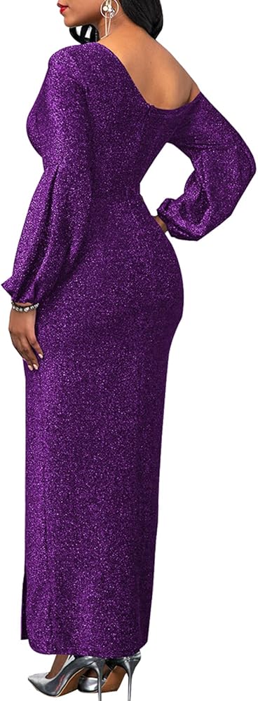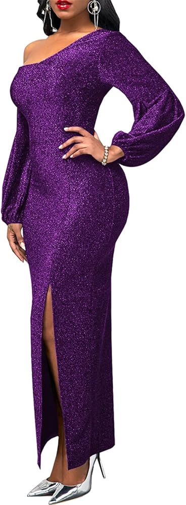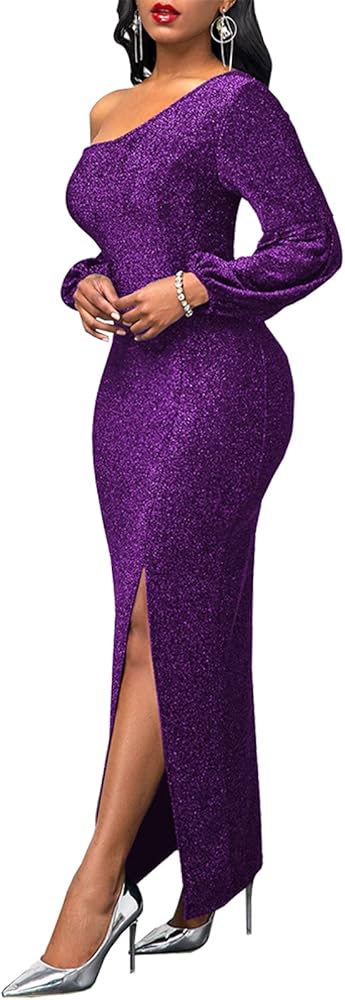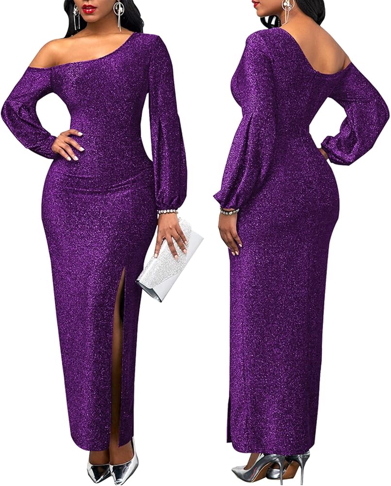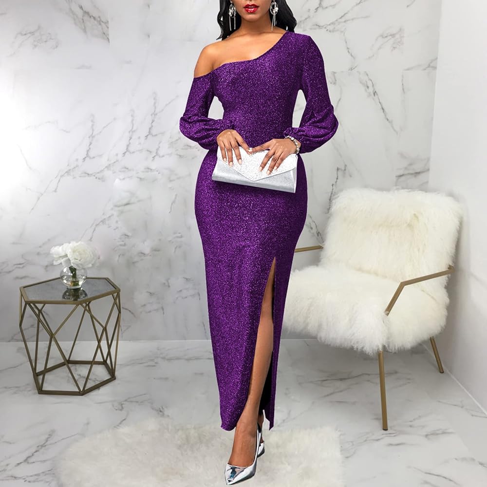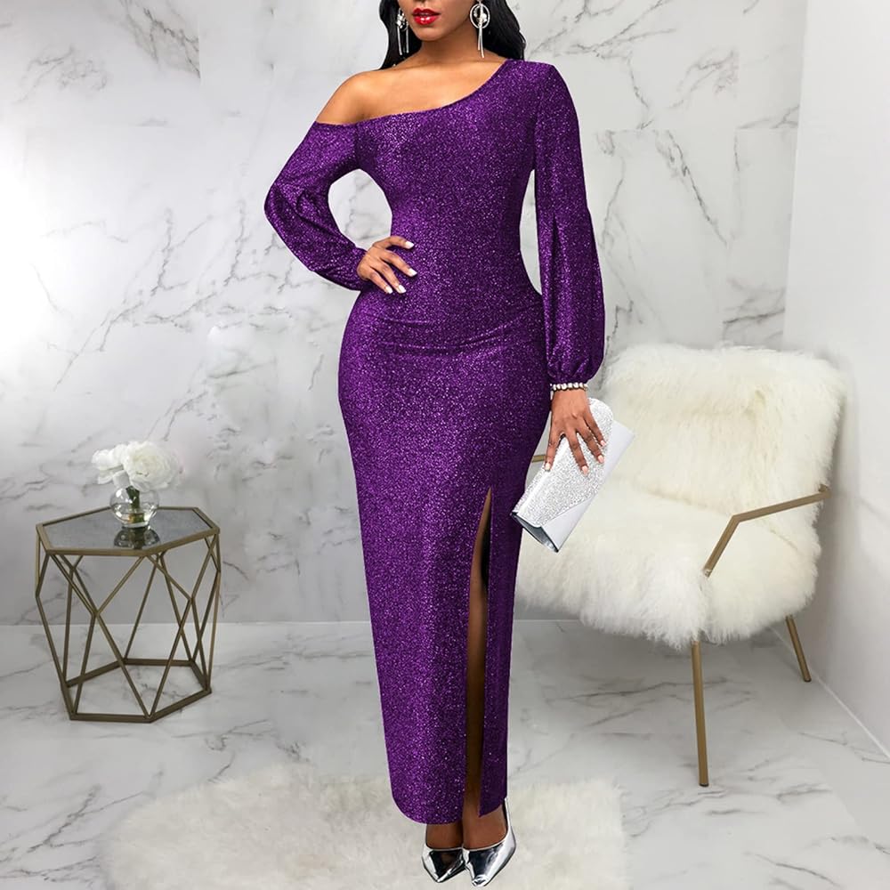 【نمط متطابق】: فساتين ماكسي للحفلات المسائية ذات الكتف الواحد والأكمام الطويلة والترتر اللامع للنساء تبدو رائعة لتتماشى مع الكعب العالي، وحفلات الزفاف، والمجوهرات، والقلائد، والأقراط، وحقائب الكتف، والقابض. زيادة سحرك إلى أقصى حد مع الحفاظ على أقصى قدر من الراحة.