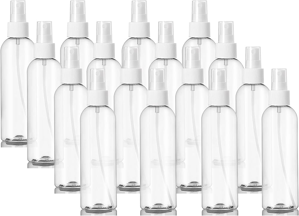 زجاجات رذاذ بلاستيكية شفافة سعة 8 أونصة من إل جي ديلز، زجاجات رش بيضاء ناعمة قابلة لإعادة الملء للزيوت العطرية والعطور والسفر، عبوة من 16 قطعة، مصنوعة في الولايات المتحدة الأمريكية