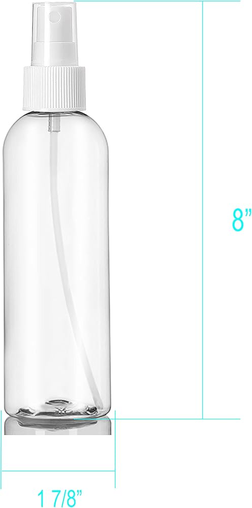 This clear polyethylene terephthalate (PET) spray bottle comes with a white mist sprayer. This bullet bottle/sprayer combination is ideal for packaging personal care products, cleaners and other applications that require misted dispensing. Mist sprayer features a 6.75" dip tube and a protective overcap. Bullet bottles are known for their rounded shoulders that give them their bullet-like appearance. These rounded shoulders allow for easy product dispensing.