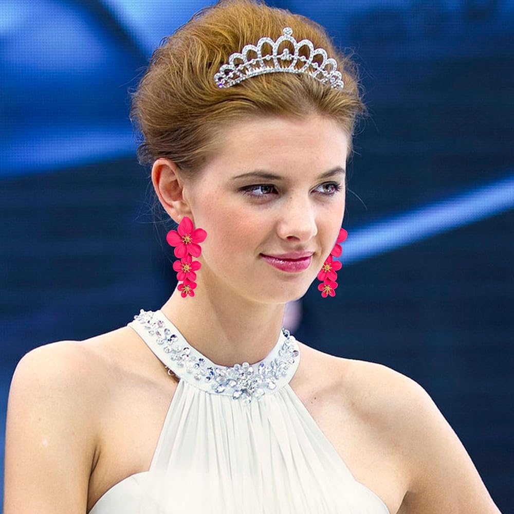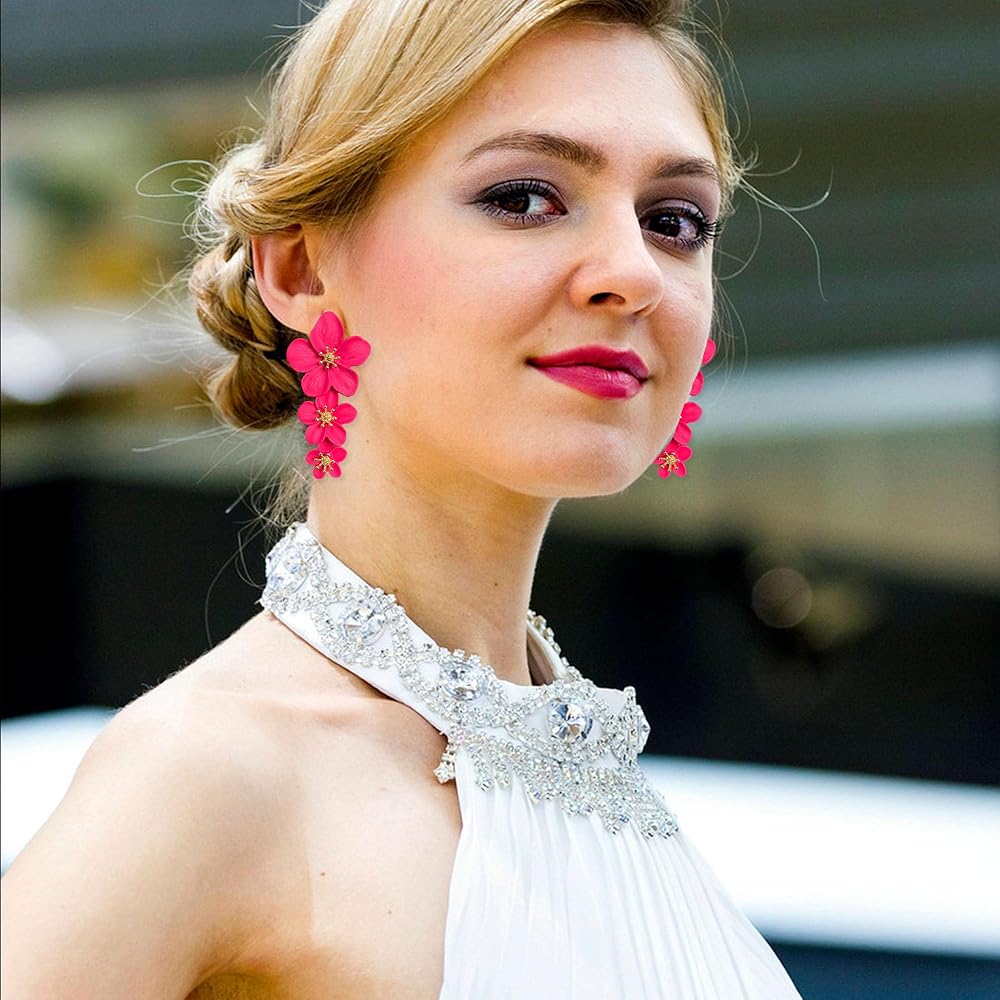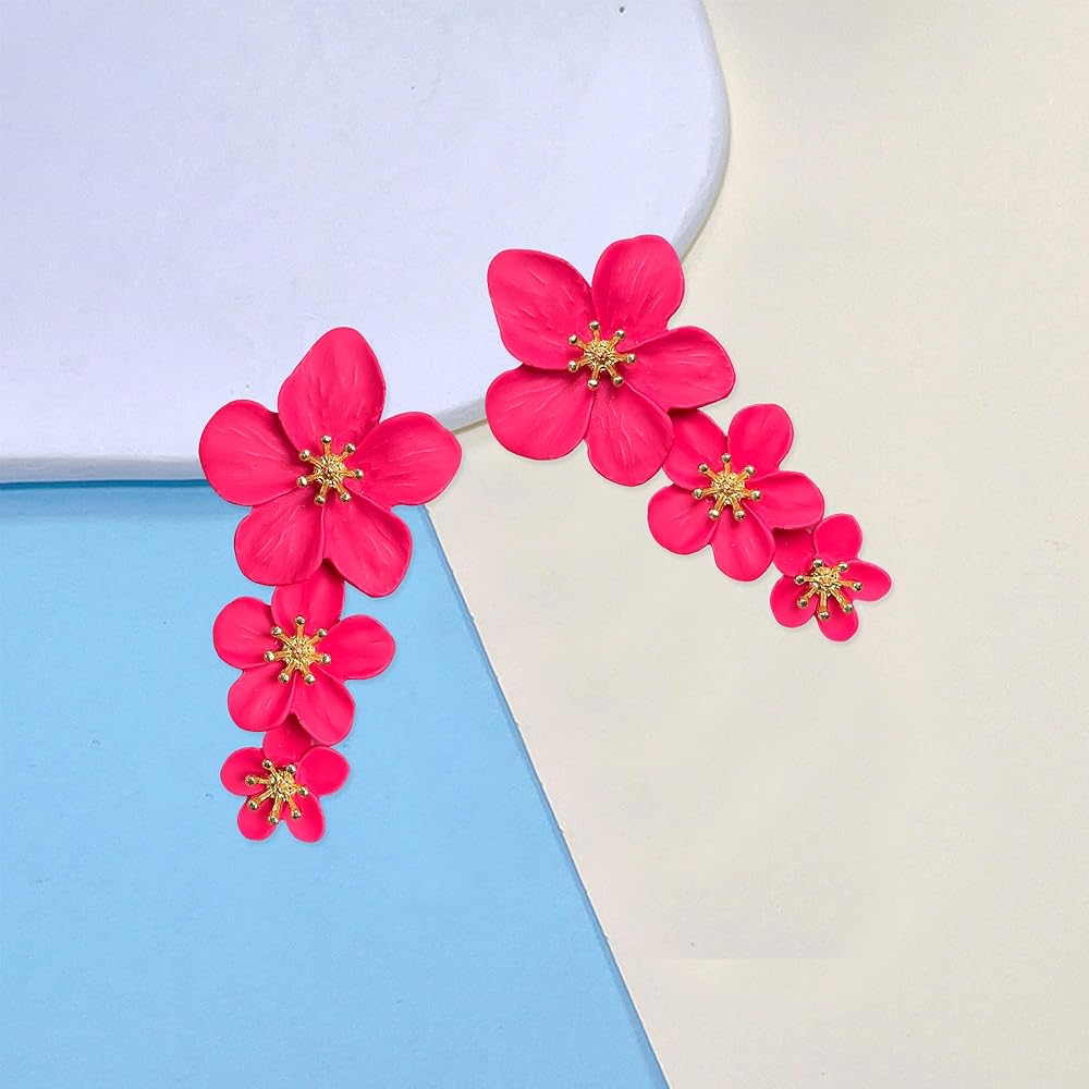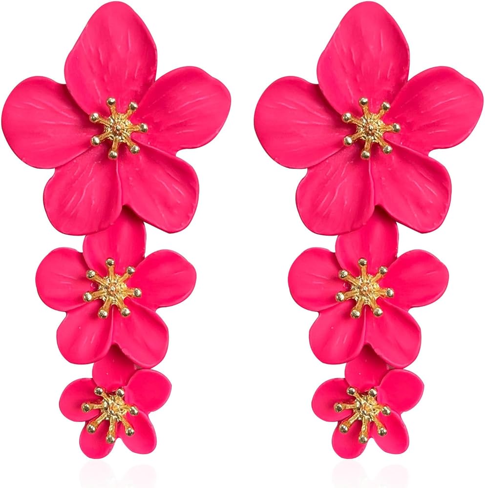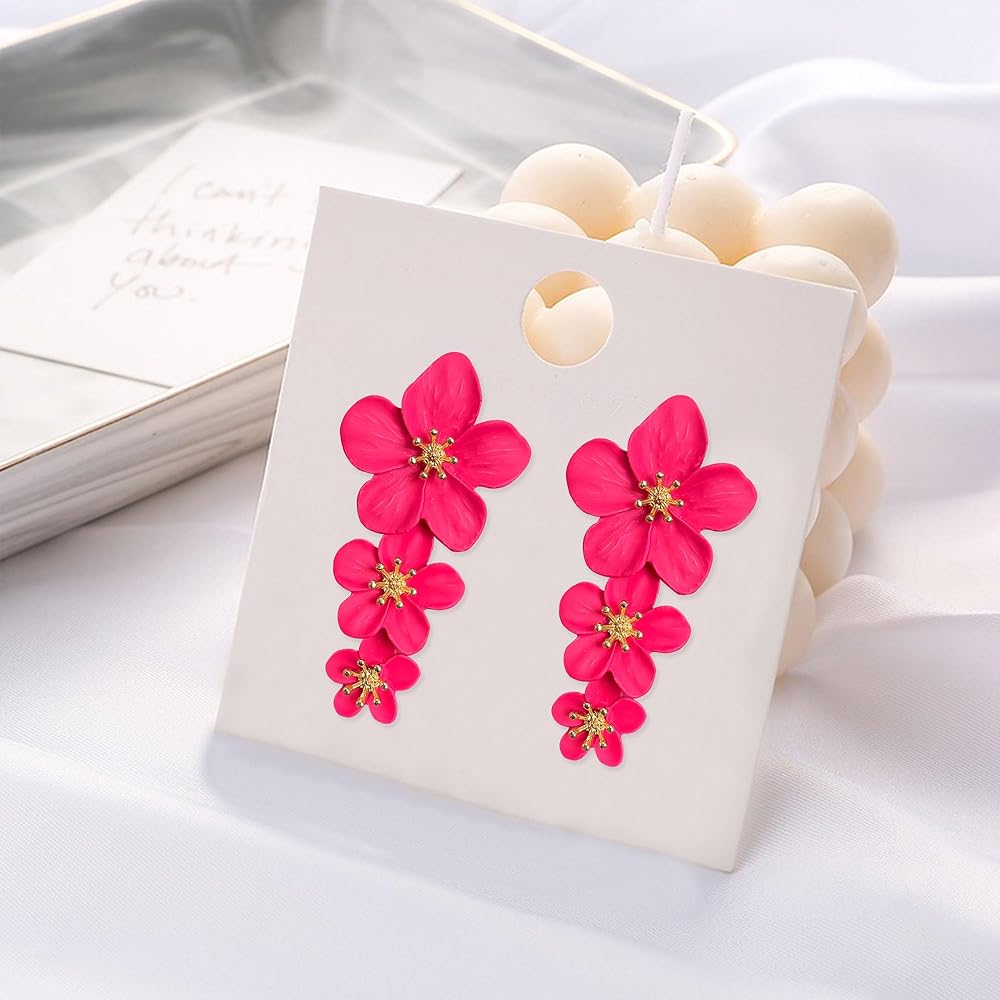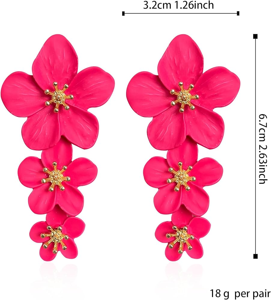 • ♥ أقراط الزهور الأنيقة -- مستوحاة من أنماط البوهيمي وهاواي، تتميز أقراطنا المتدلية الزهرية بثلاثة زهور متدرجة بلمسة نهائية غير لامعة مع مركز من السداة الذهبية، مما يضيف سحرًا إلى ملابسك كلما ارتديتها.