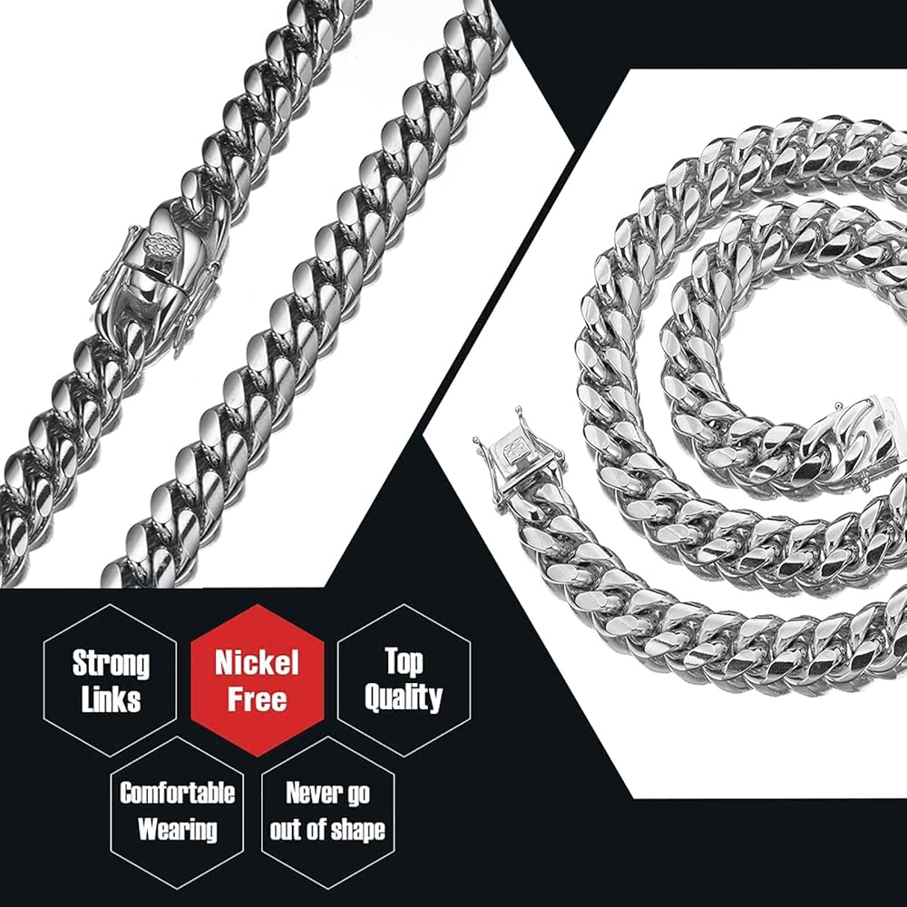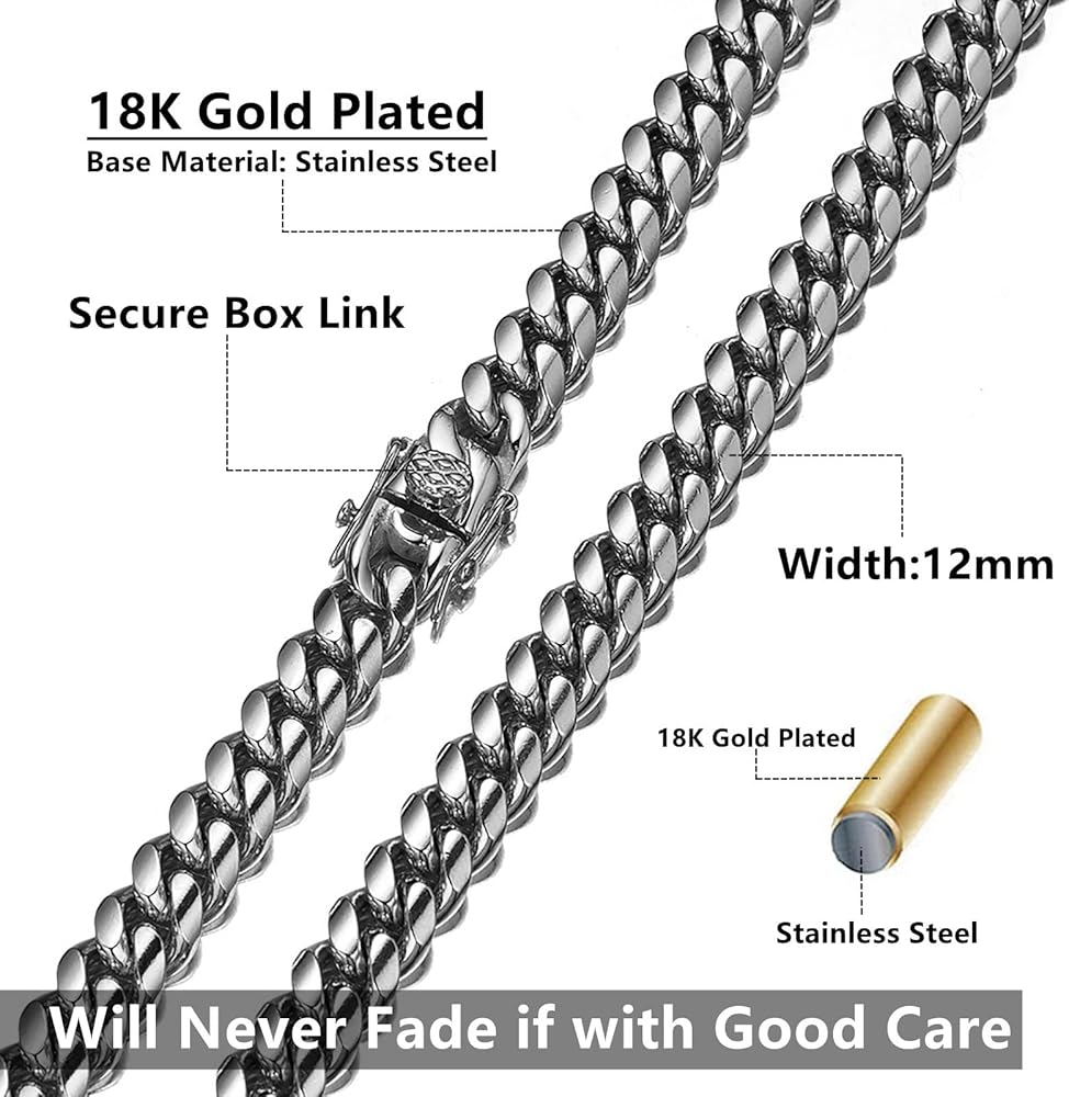 【صناعة متقنة】تعتمد هذه السلسلة الكوبية مقاس 12 مم مطلية بالذهب الأصفر/الذهب الأبيض عيار 18 قيراط الفولاذ المقاوم للصدأ كمادة أساسية، ولن تتلاشى أو تفقد بريقها.