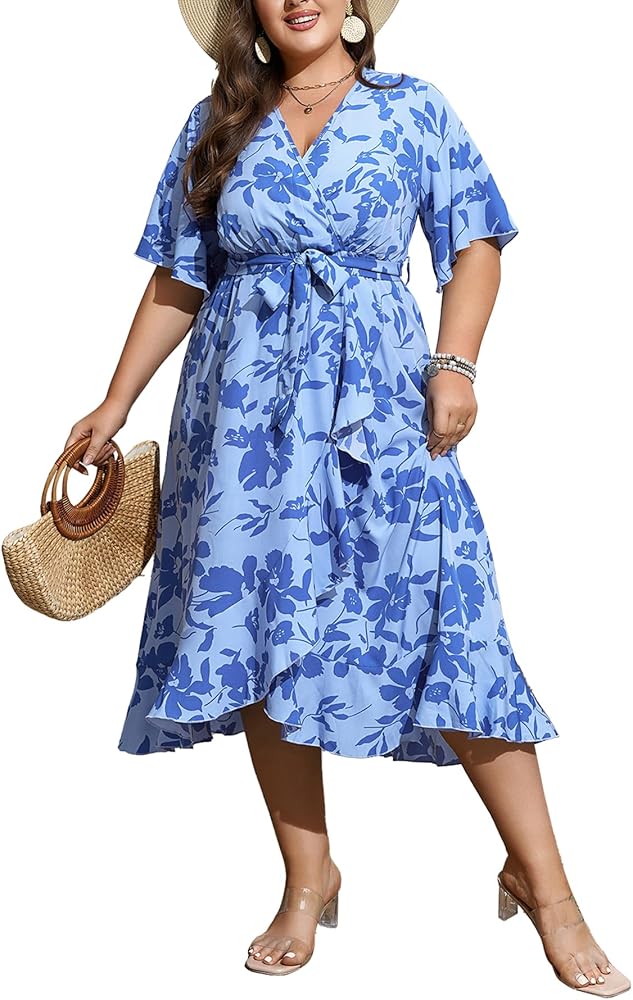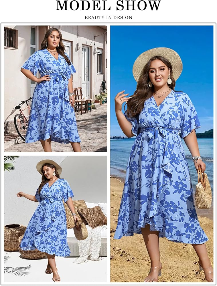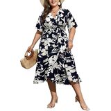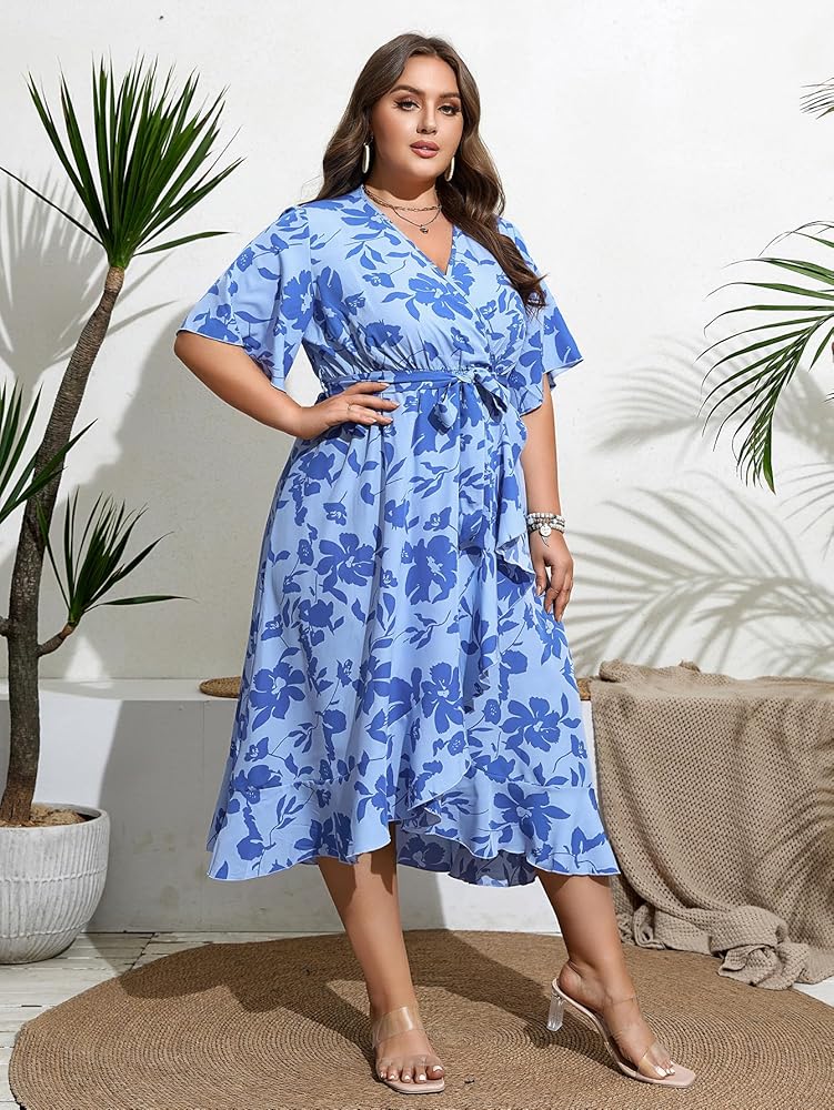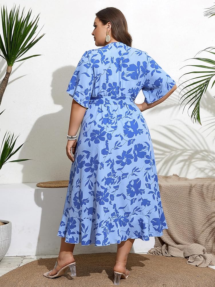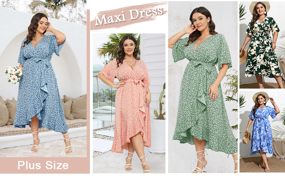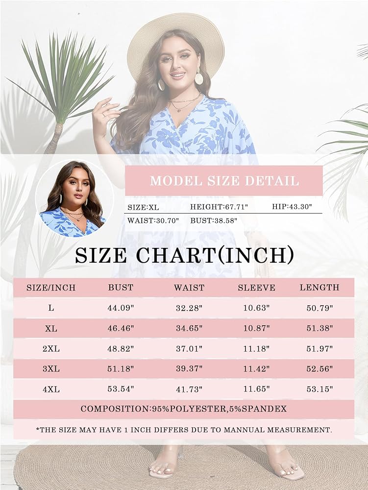 فستان طويل مزين بالزهور: هذا الفستان الطويل ذو المقاس الكبير مصنوع من 95% بوليستر، 5% ألياف لدنة، وهو أكثر نعومة وخفة، من أجل راحة واحتواء أفضل
