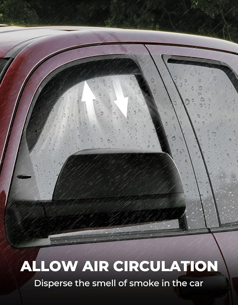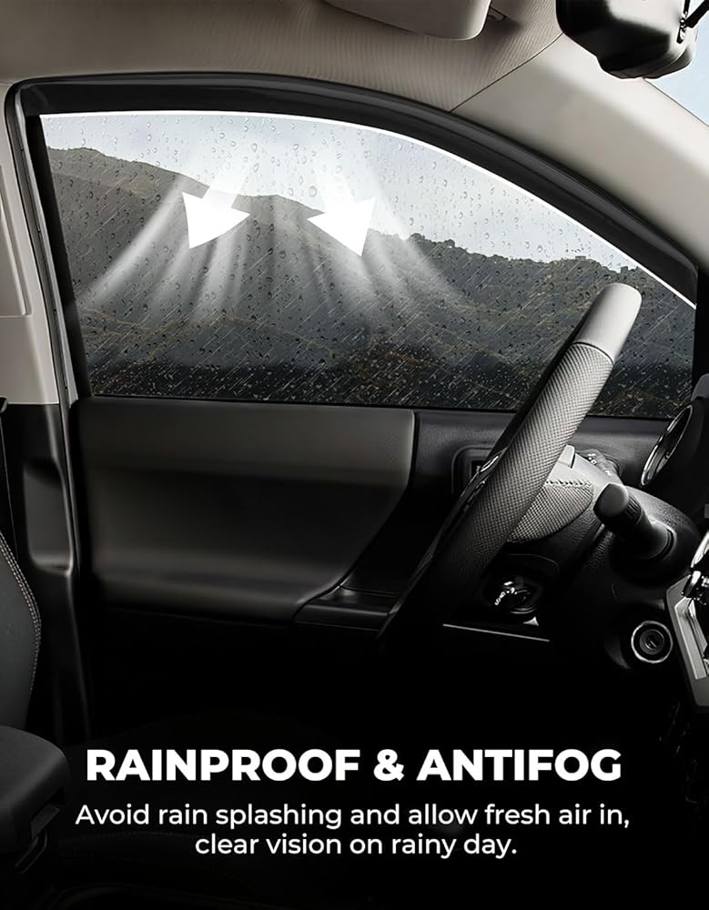 مقاوم للمطر ومضاد للضباب - يسمح بفتح النوافذ قليلاً، ويمنع دخول مياه المطر من خلال قناع النافذة، ويسمح للهواء النقي بالدخول، وتجنب تعفير النافذة، مثالي لقيادة السيارة.