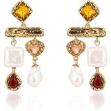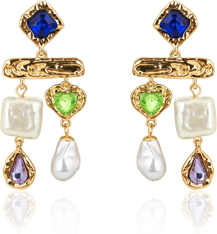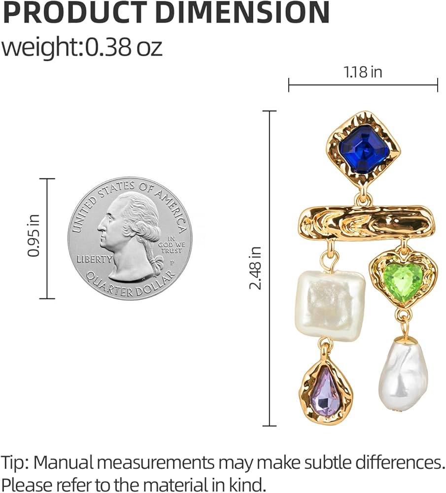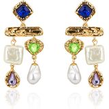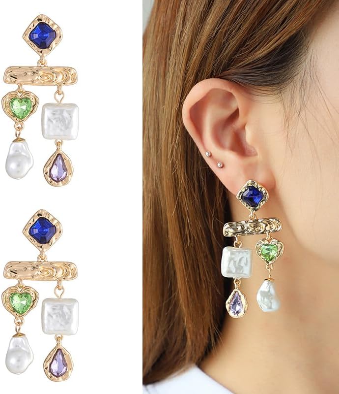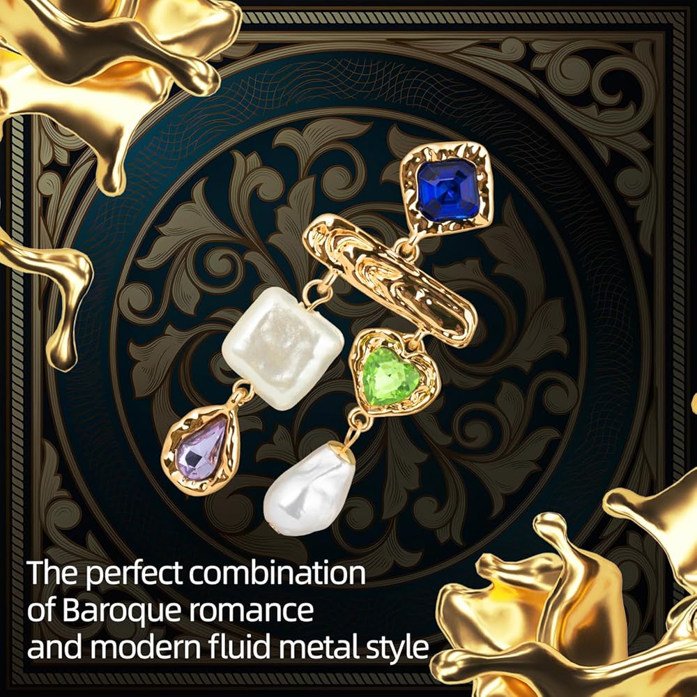 ❤حداثة الباروك❤ يجمع هذا الزوج من الأقراط بين الطراز الباروكي والتصميم النحتي الحديث. مزيج من اللؤلؤ الكبير وأحجار الراين الملونة مع قاعدة معدنية سائلة يخلق إحساسًا بالأناقة.