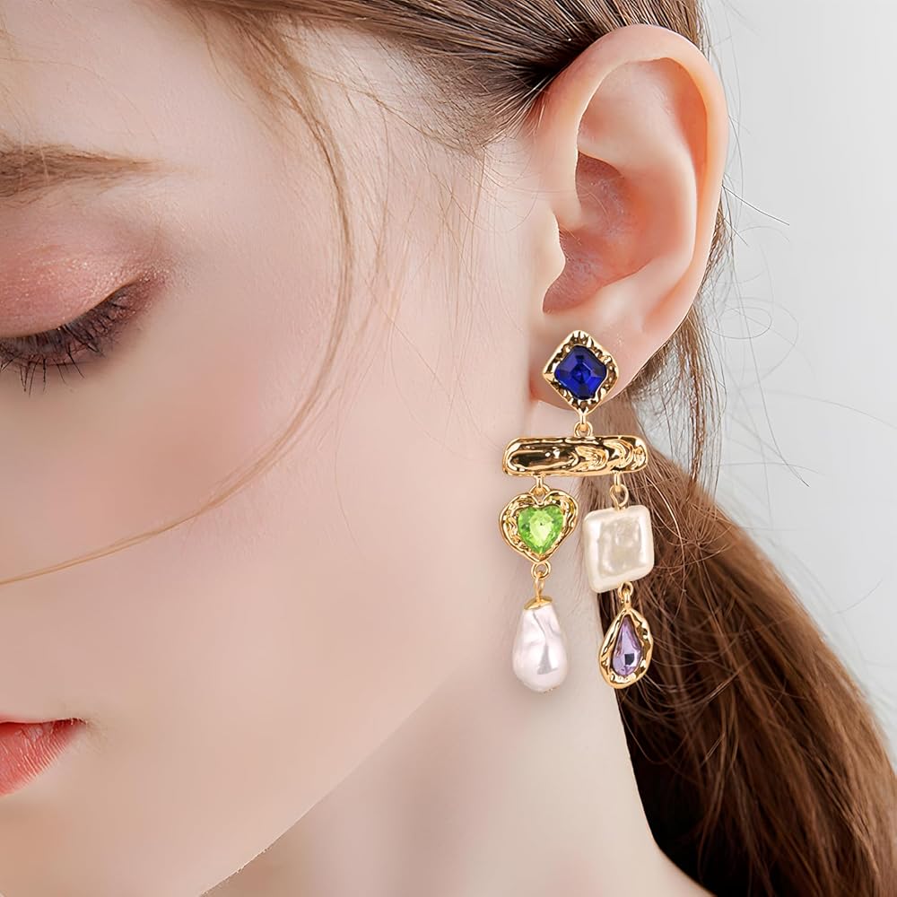 ❤ أحجار كريمة ملونة ❤ يتكون مسمار الأذن المميز هذا من اللؤلؤ و3 أحجار كريمة ملونة مختلفة. ستجعلك الألوان الرائعة الحضور الأكثر إبهارًا في أي حفلة.