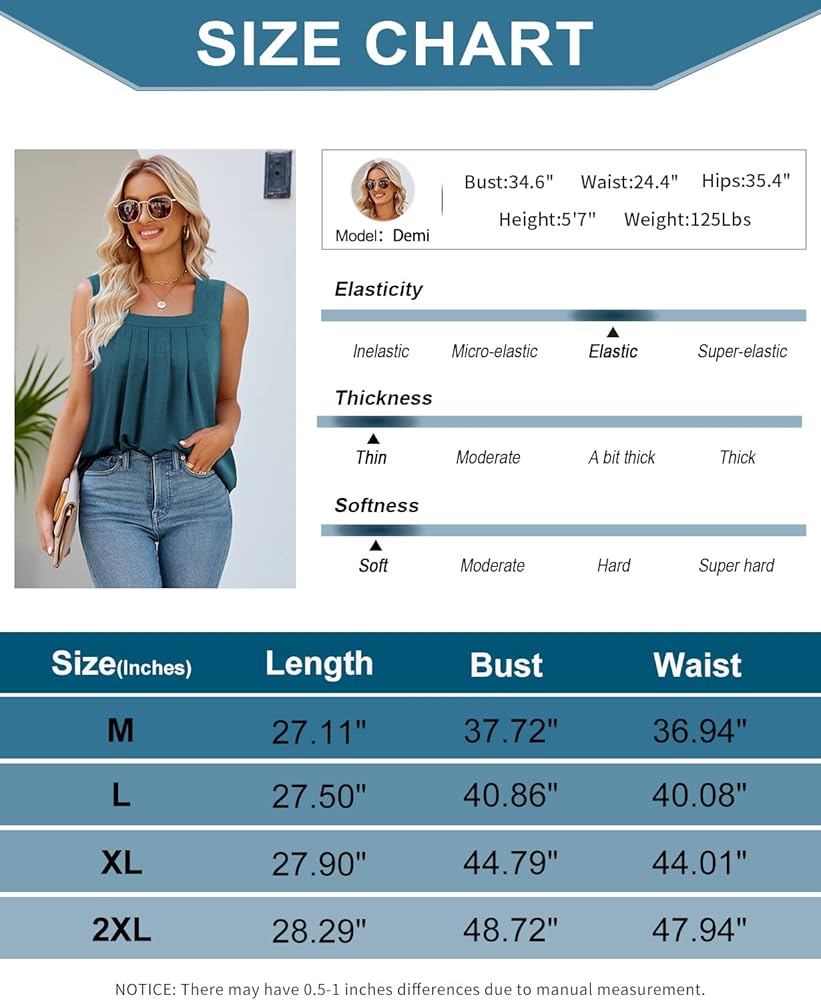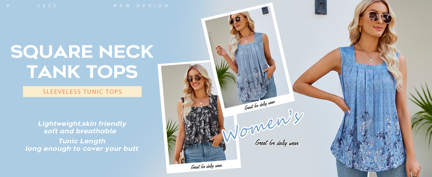 - 🌸المميزات: رقبة مربعة/ثنيات أمامية/بدون أكمام/حاشية منحنية/قمصان علوية نسائية فضفاضة/قمصان علوية فضفاضة للنساء/قمصان صيفية للنساء 2023/ملابس حمل
