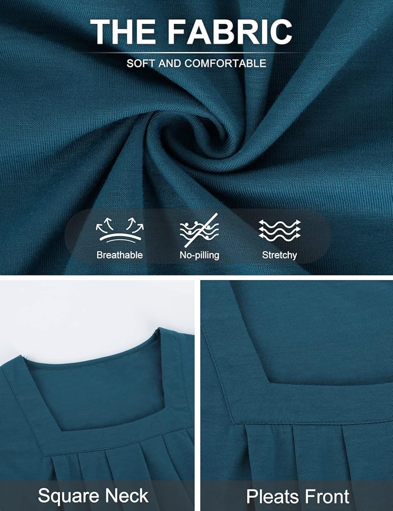 - 👚مطويات أمامية: قمصان بدون أكمام برقبة مربعة مع طيات من الأمام، وهي جذابة وانسيابية لإخفاء المعدة دون ظهور الحمل